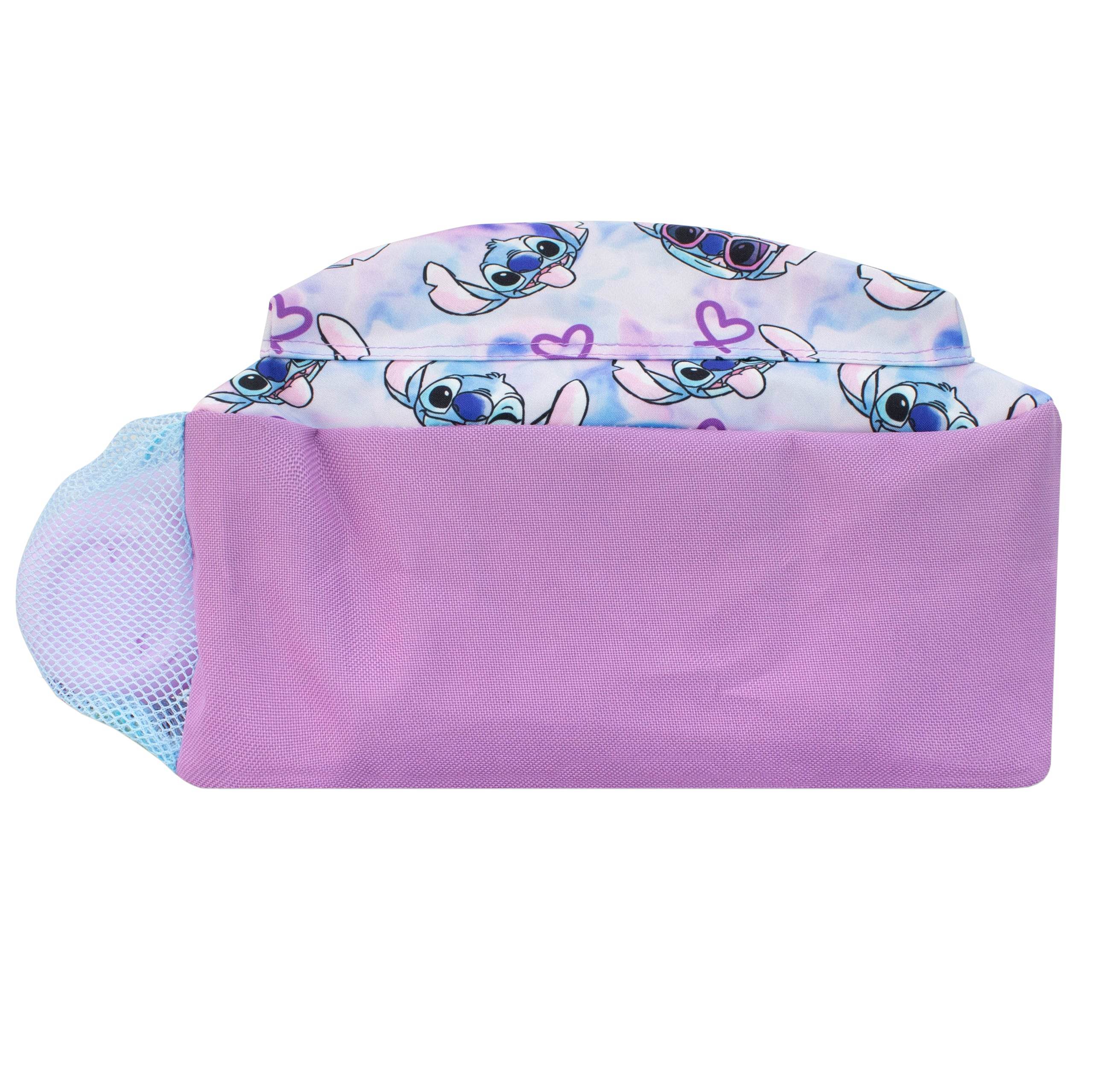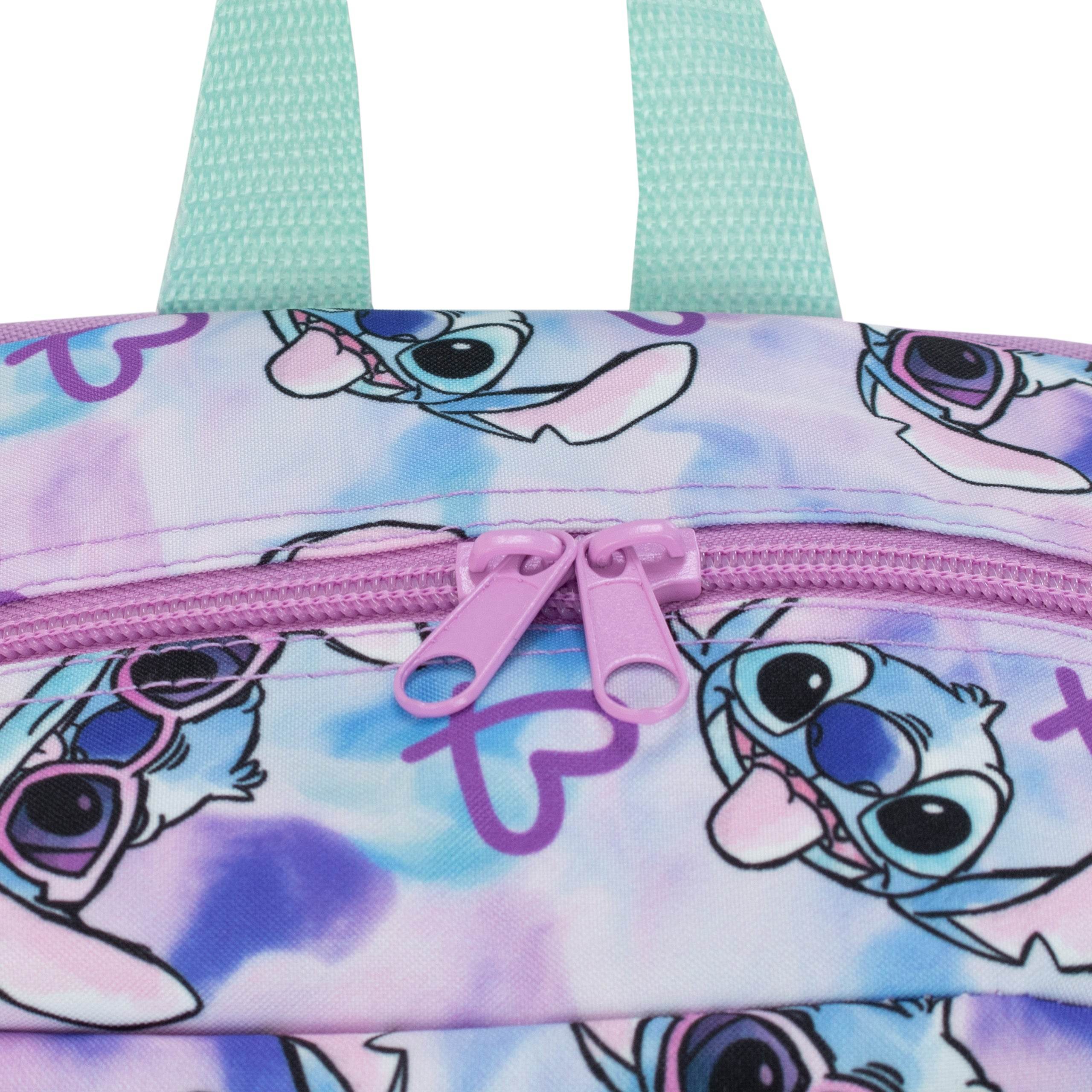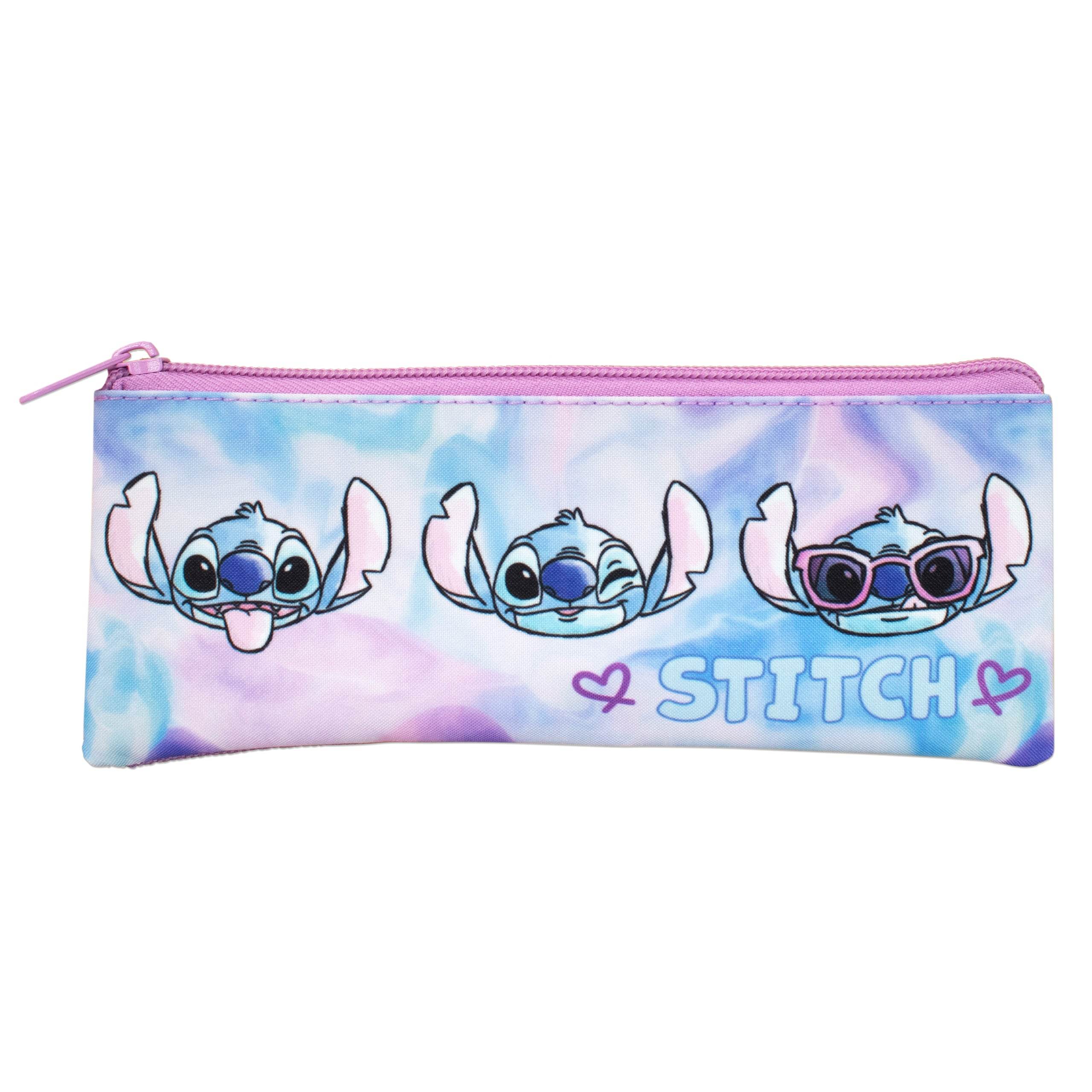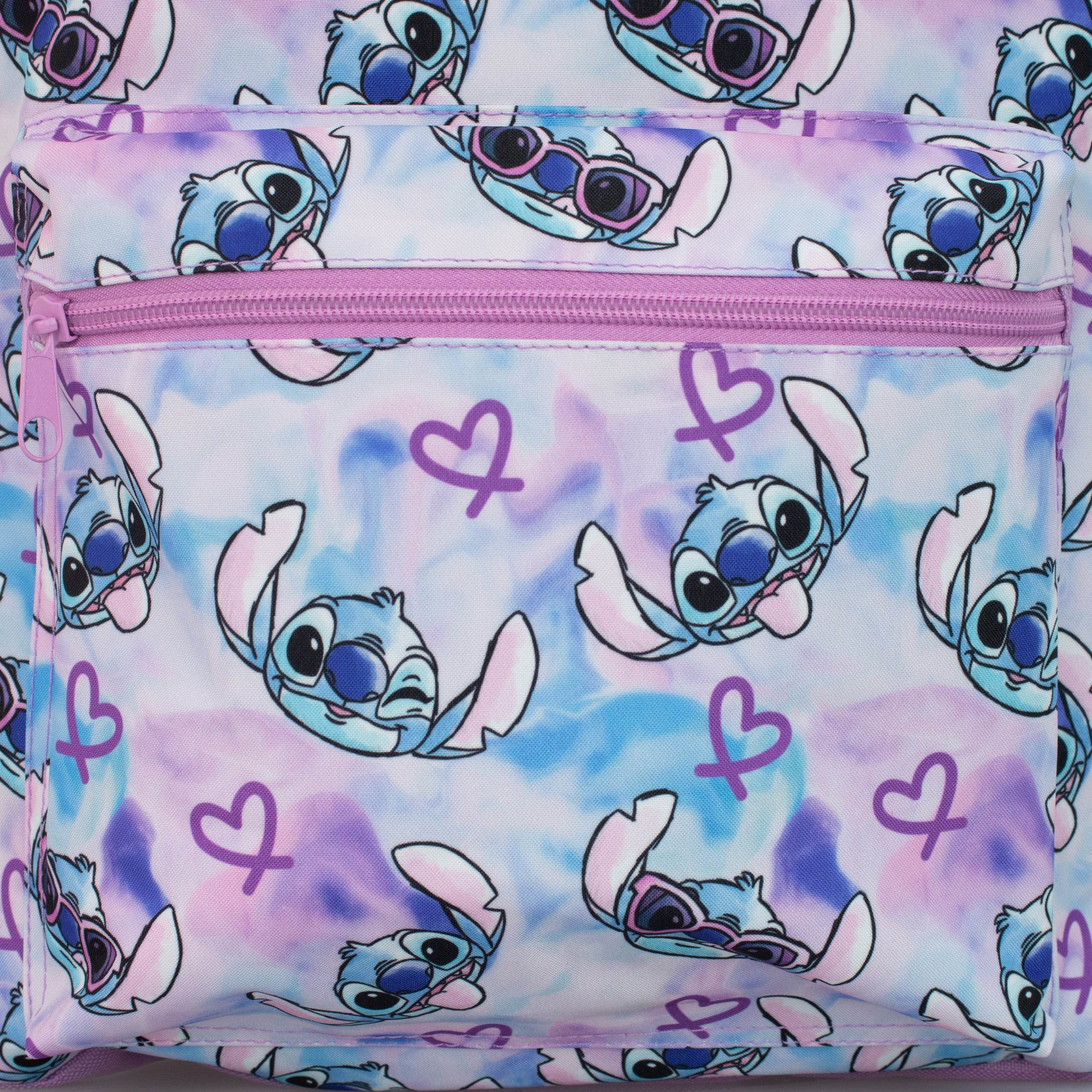 • Unique Tie-dye Design - Vibrant blue, pink, and purple pattern featuring a cool sunglasses-wearing Stitch on the backpack and pencil case.