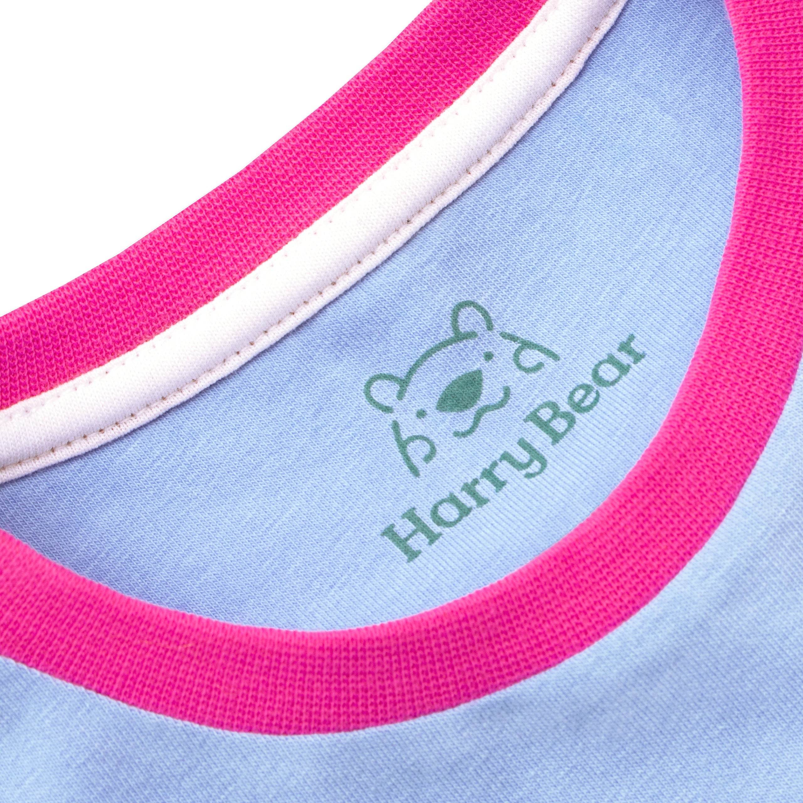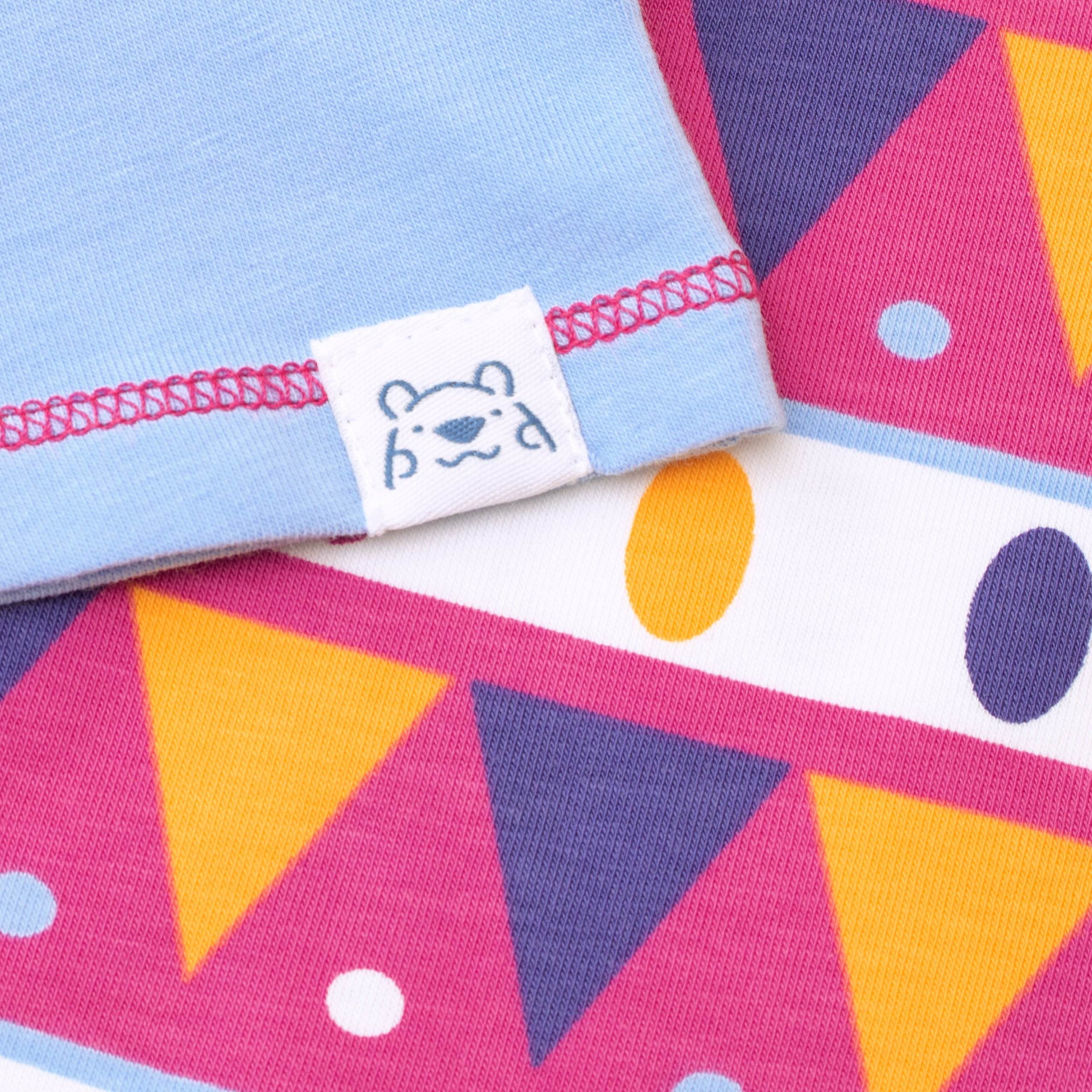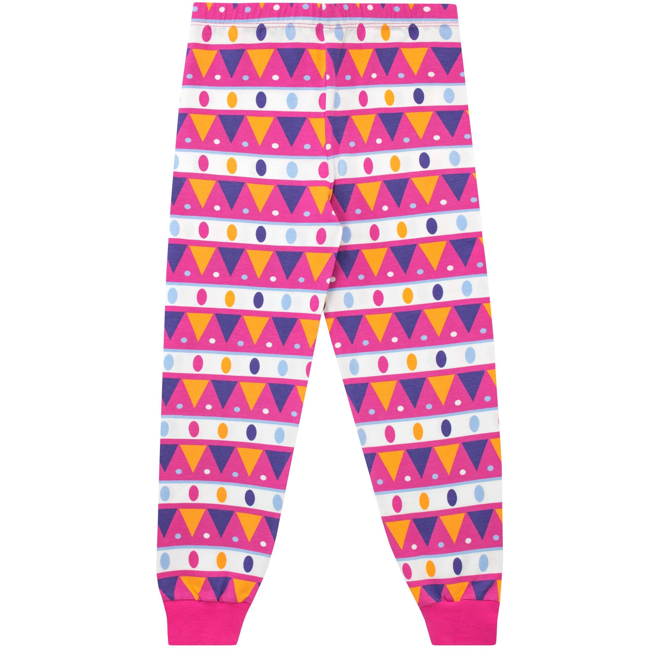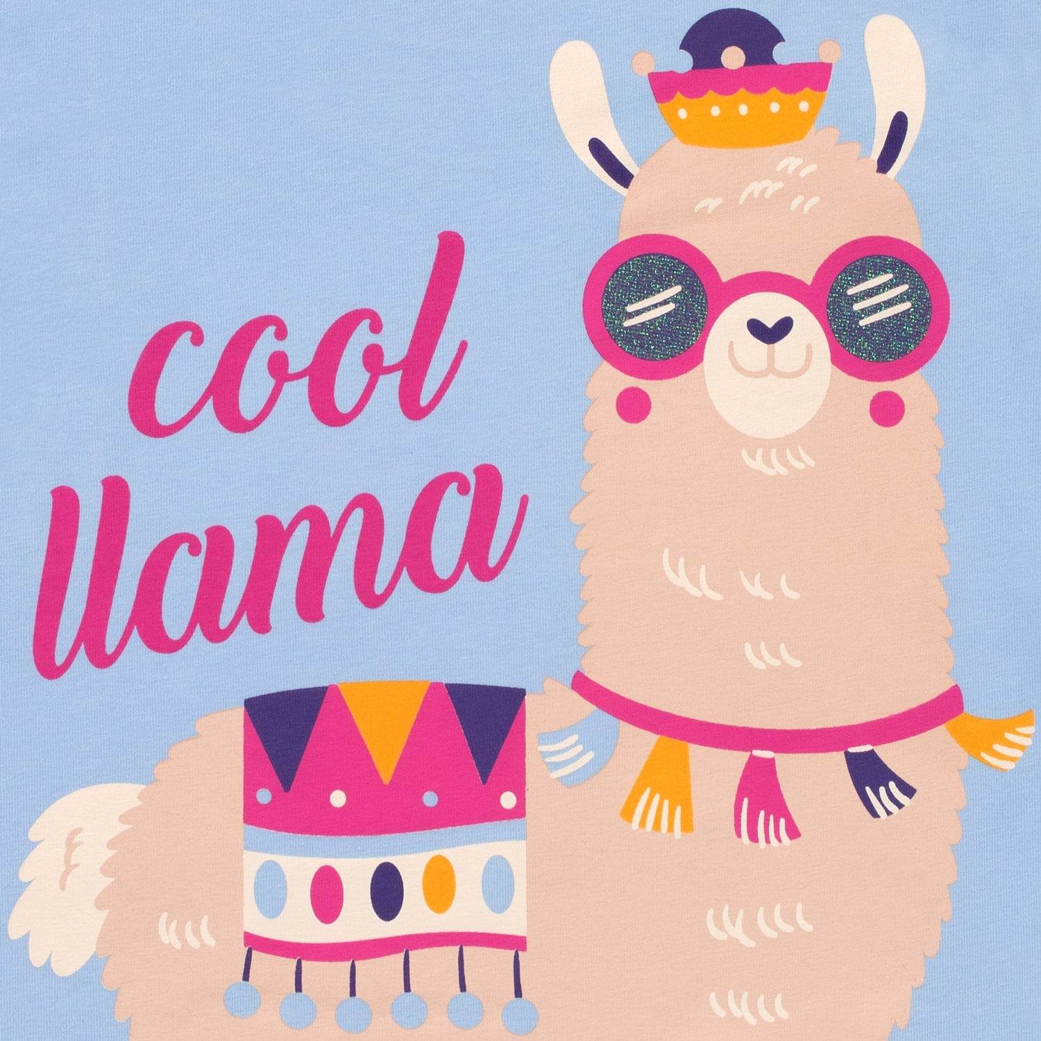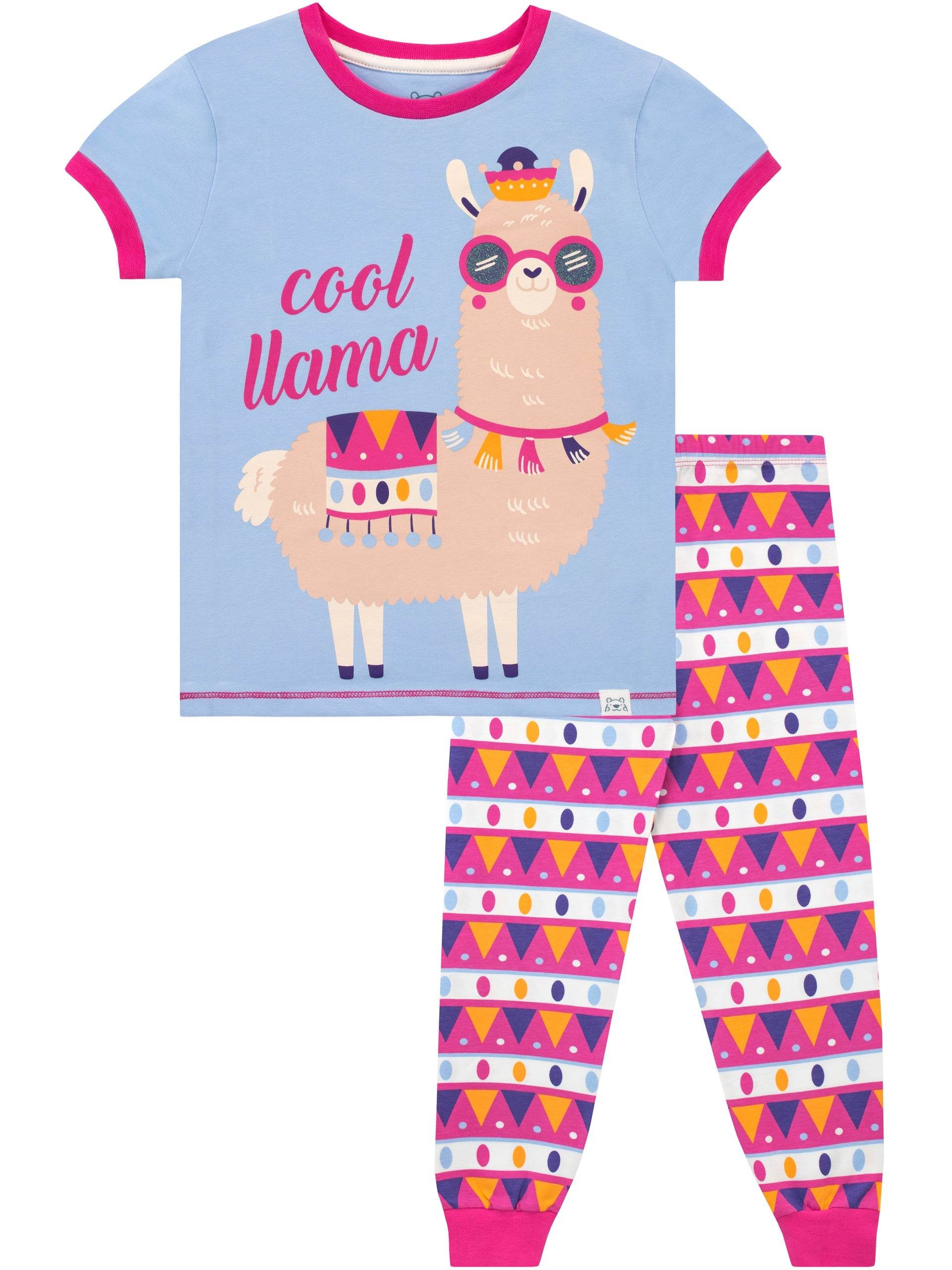There will be no bedtime drama with these llamaPJ's! Harry Bear has designed these adorable jammies to keep your little llama fan looking and feeling cool. The blue short sleeve top features a llama with a Peruvian blanket and glittered sunglasses w"Cool llama" wording. Completing the setare Aztec inspired pyjamabottoms with an all over geometricpattern in pink, orange and purple.