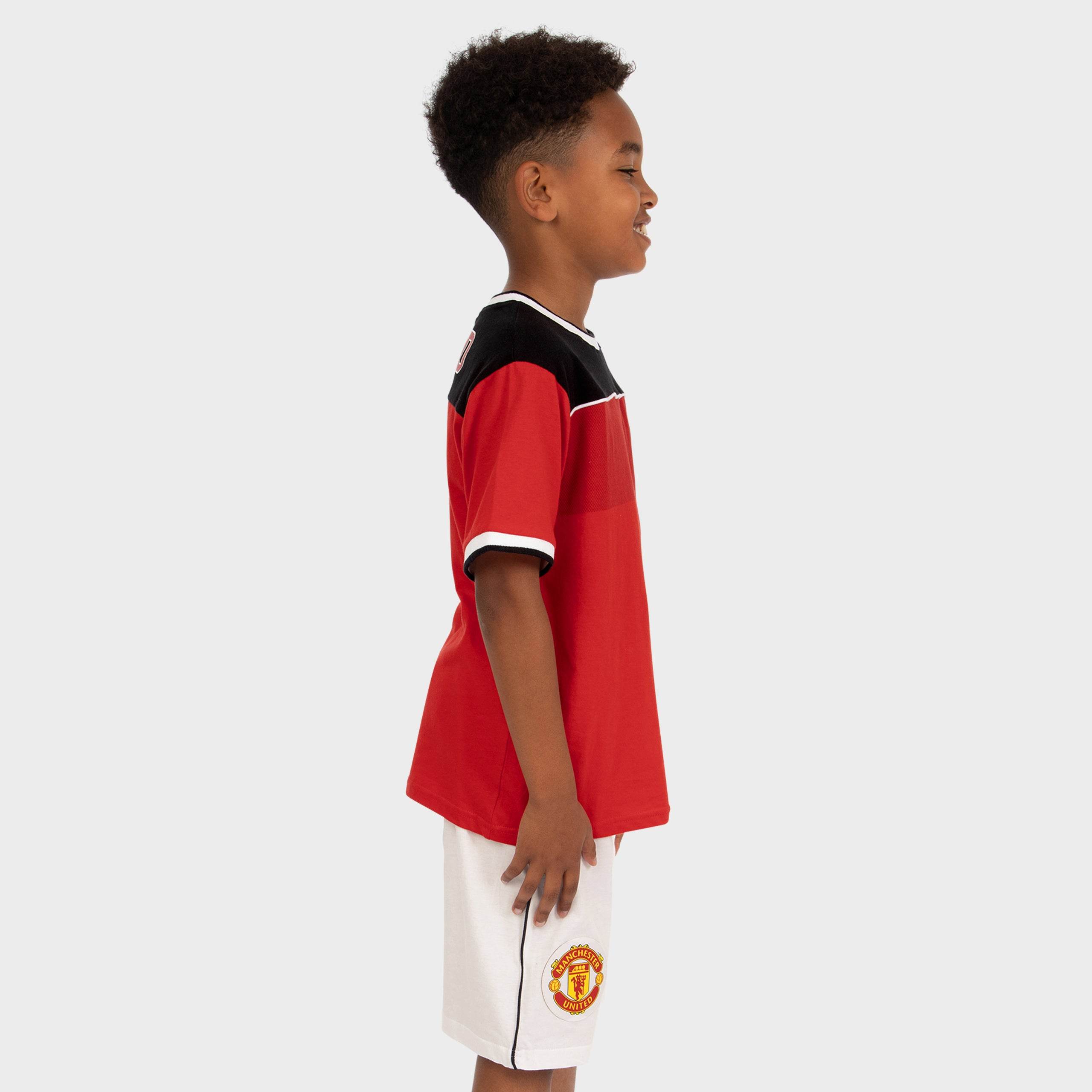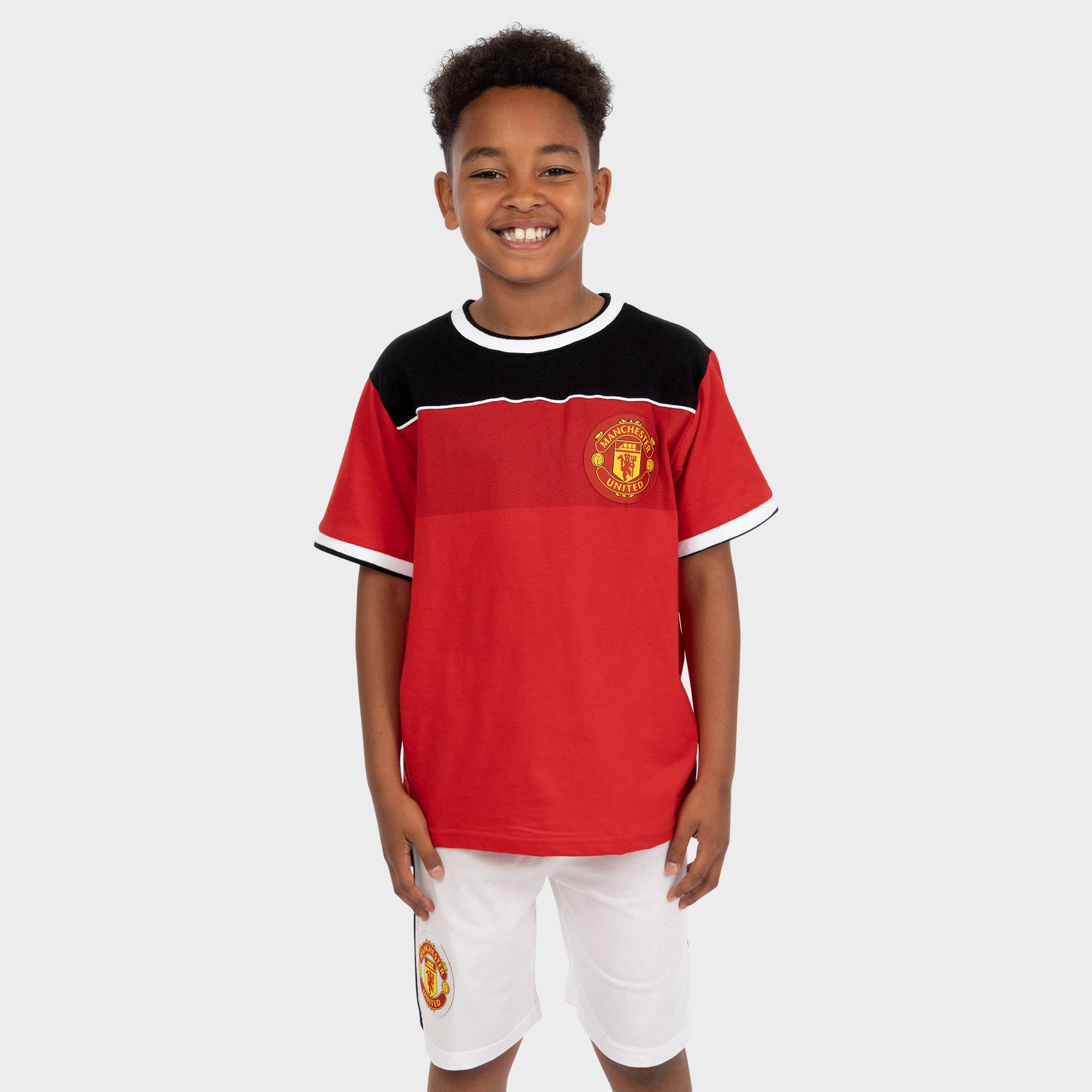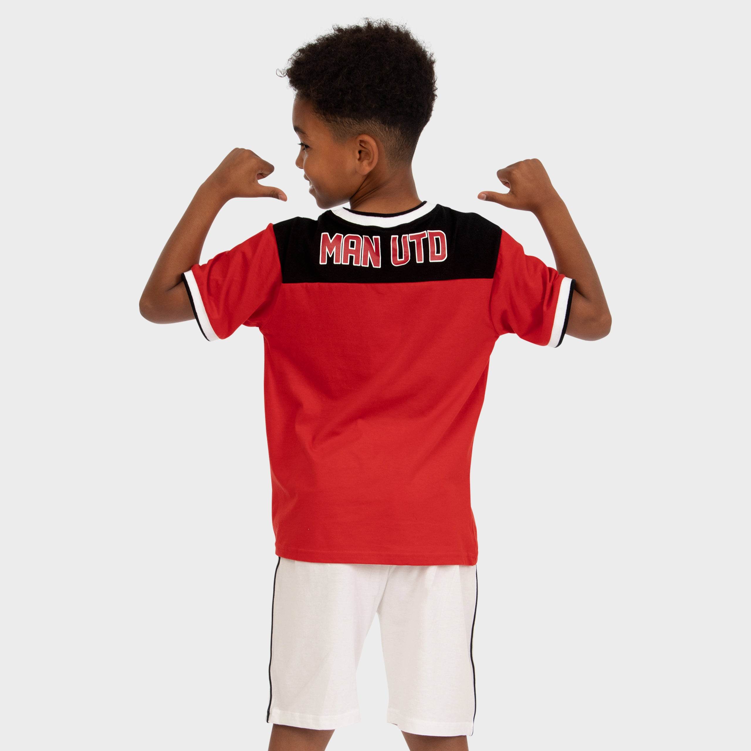 Your Red Devil will be ready for a kick about at Old Trafford with these Man United jammies! This Manchester United pyjama set features a red short sleeve top with the Man United logo, complete with a colour block collar and a cool back print with the wording 'Man UTD'. Paired with white shorts with the Manchester United logo on. The perfect PJs for cooler nights! Your little football fanatic will be match ready with these PJs.