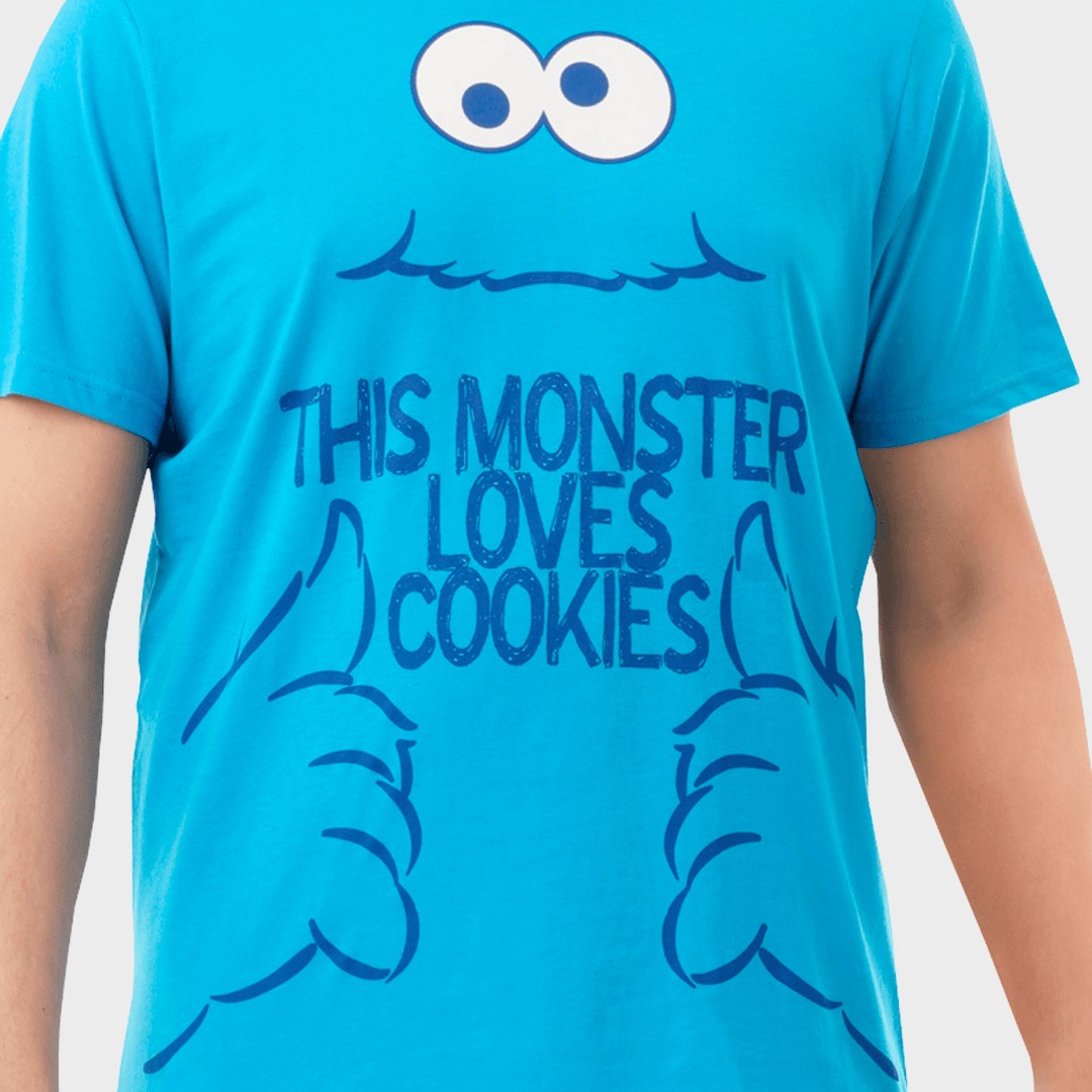 Me want cookie! Perfect for your very own cookie connoisseur, these statement PJs are a must-have for any fan of the classic series! The Cookie Monster blue t-shirt features a large print of the famous furry friend with the slogan 'This Monster Loves Cookies'. Paired with long bottoms in grey marl, these jammies will keep cookie monsters far and wide comfy and cosy whilst munching on their favourite snack! Om nom nom!