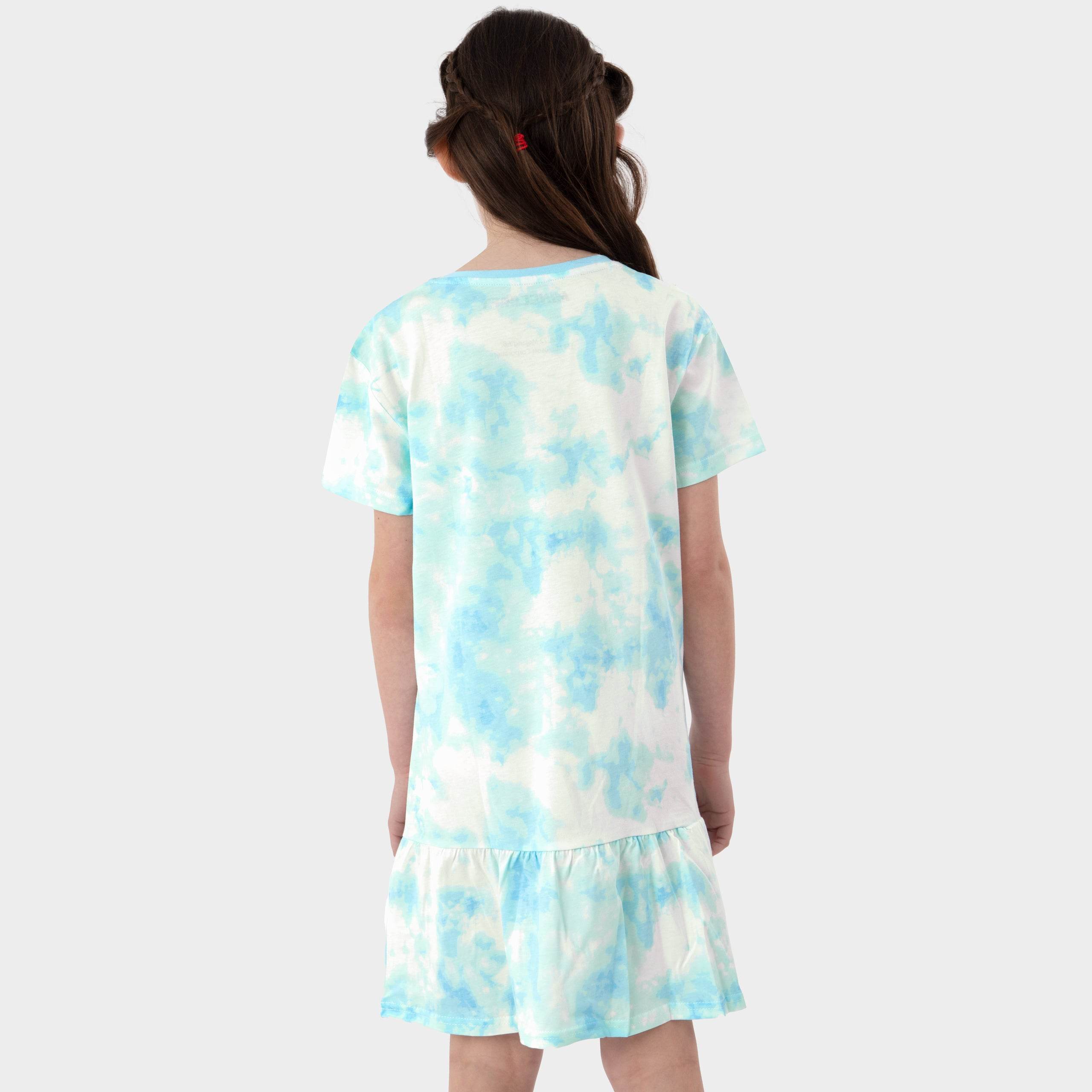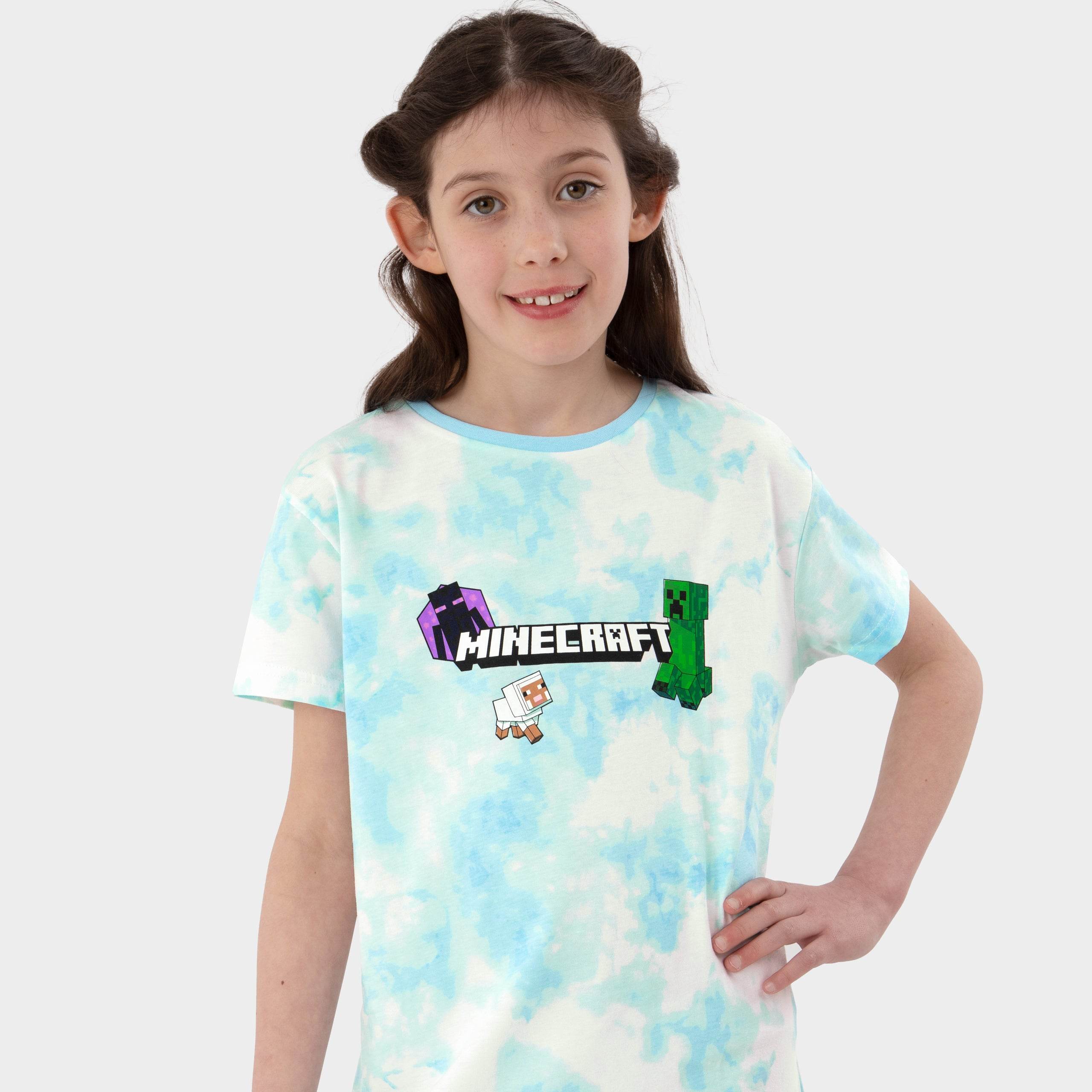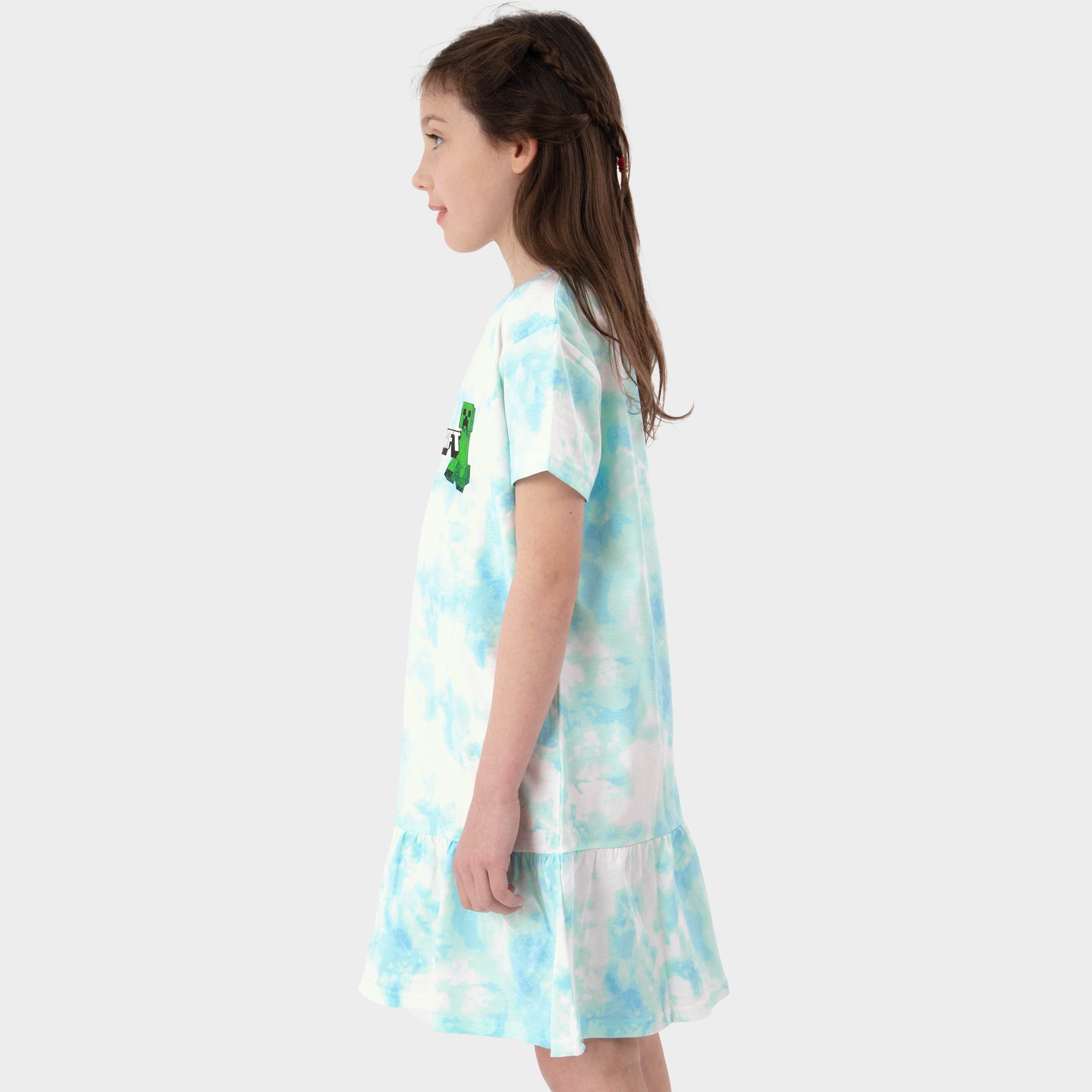 Get your little one ready to build and create in this adorable Minecraft dress. Featuring a fun all over pale blue and white tie-dye as well as the Minecraft logo surrounded by a Creeper, a Wolf and an Enderman. This adorable top is perfect for an epic gaming session!
