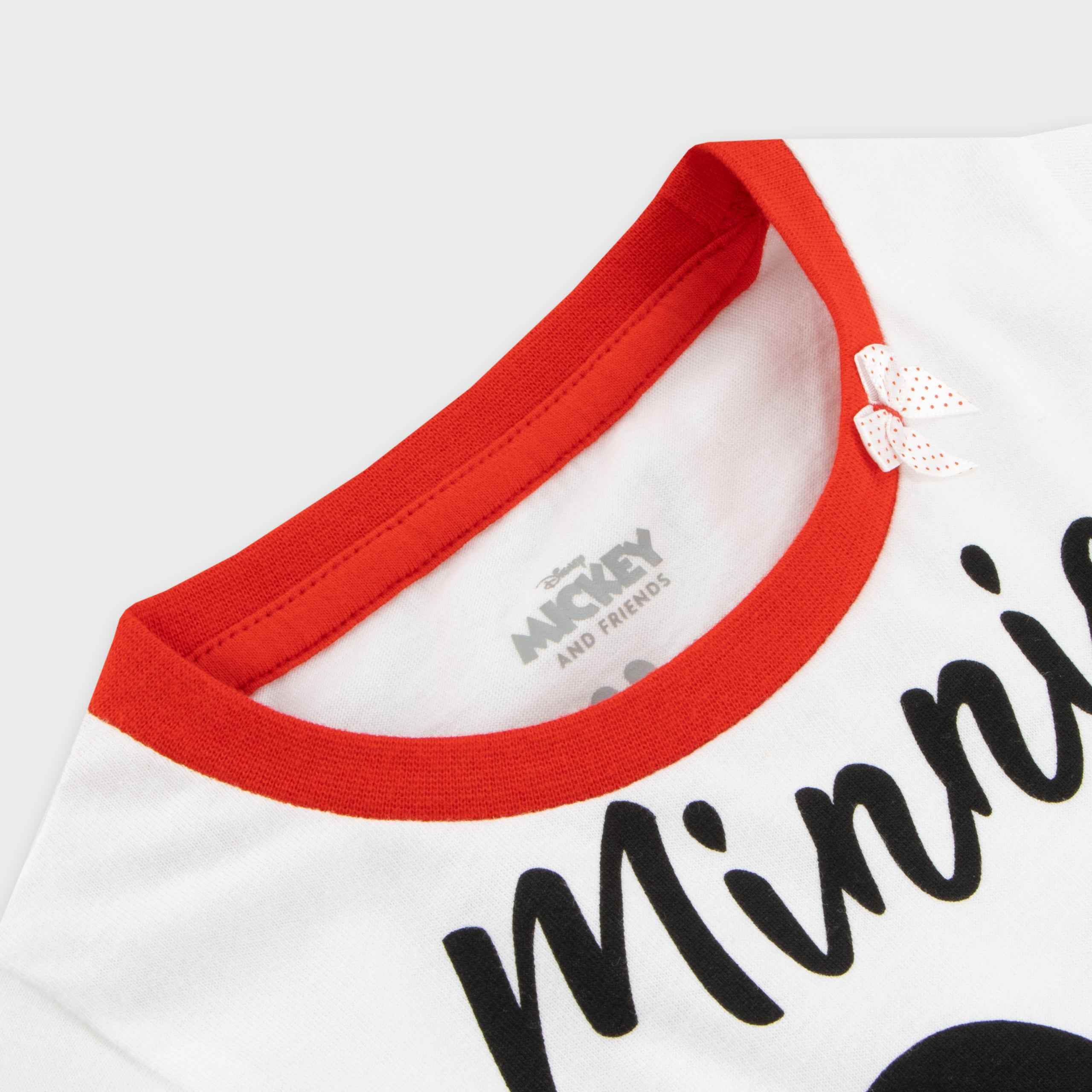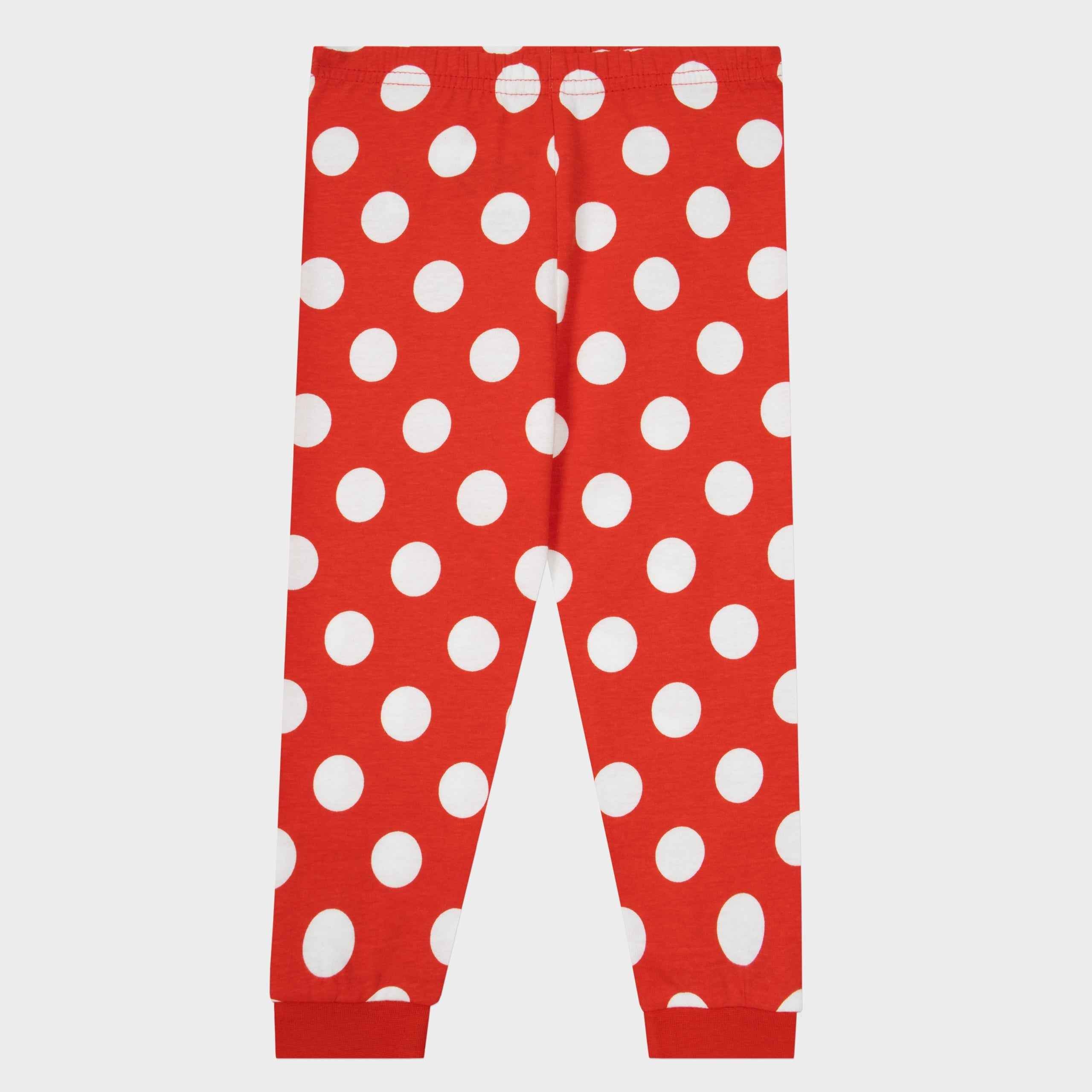 Transform bedtime into a magical adventure with our officially licensed Girls Disney Minnie Mouse Pyjamas. These enchanting Disney Merchandise PJs feature Minnie Mouse on the white top with red accents, her iconic red and white polka dot dress, signature bow, and elegant 'Minnie' lettering. The matching red bottoms have cozy cuffs and polka dots to match. Your child will love snuggling up for sweet dreams in these charming pyjamas, bringing Minnie Mouse's magic to bedtime.