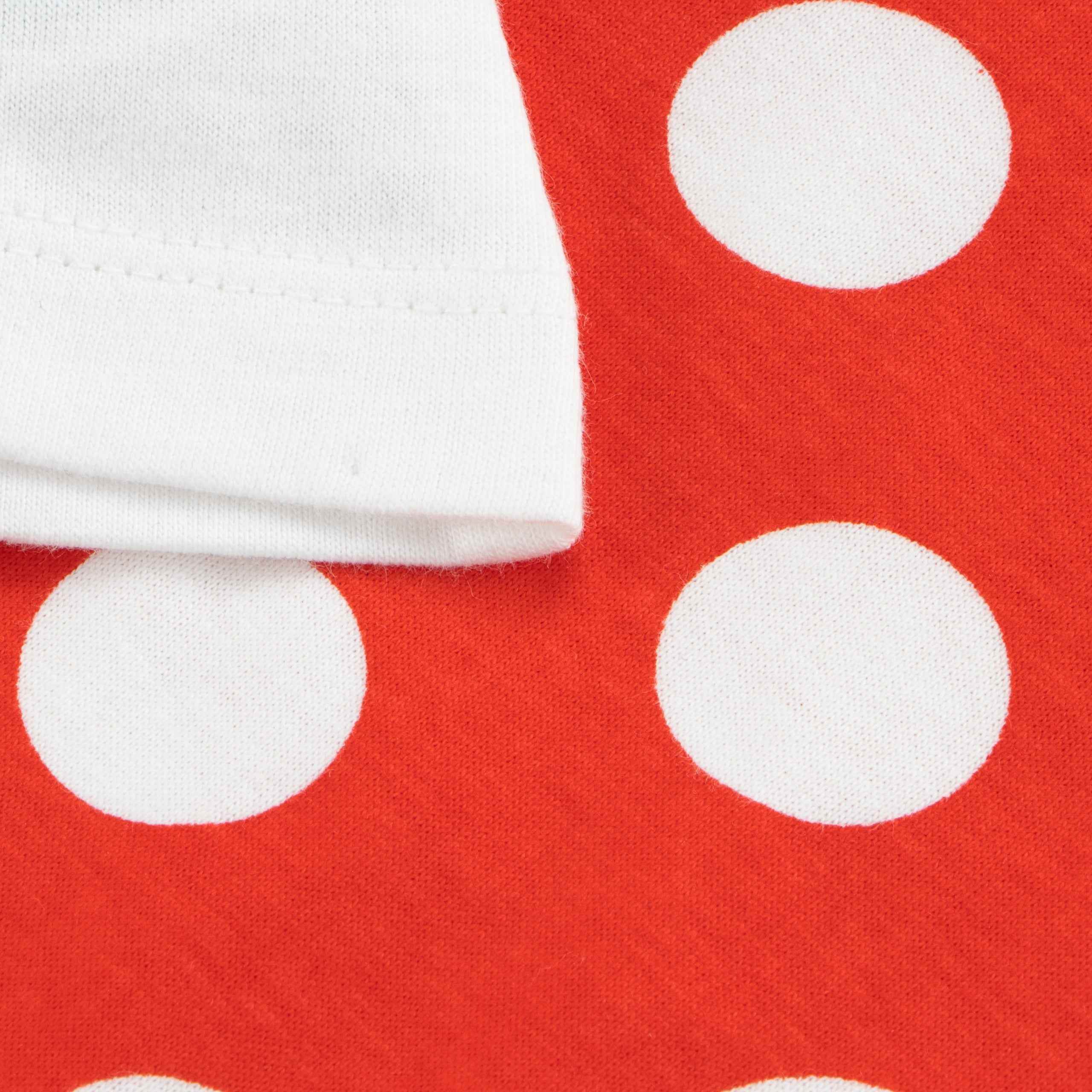 • Snuggle up in style: The white top with red accents on cuff sleeves and the red bottoms adorned with white polka dots will make your child feel like a Disney princess herself.