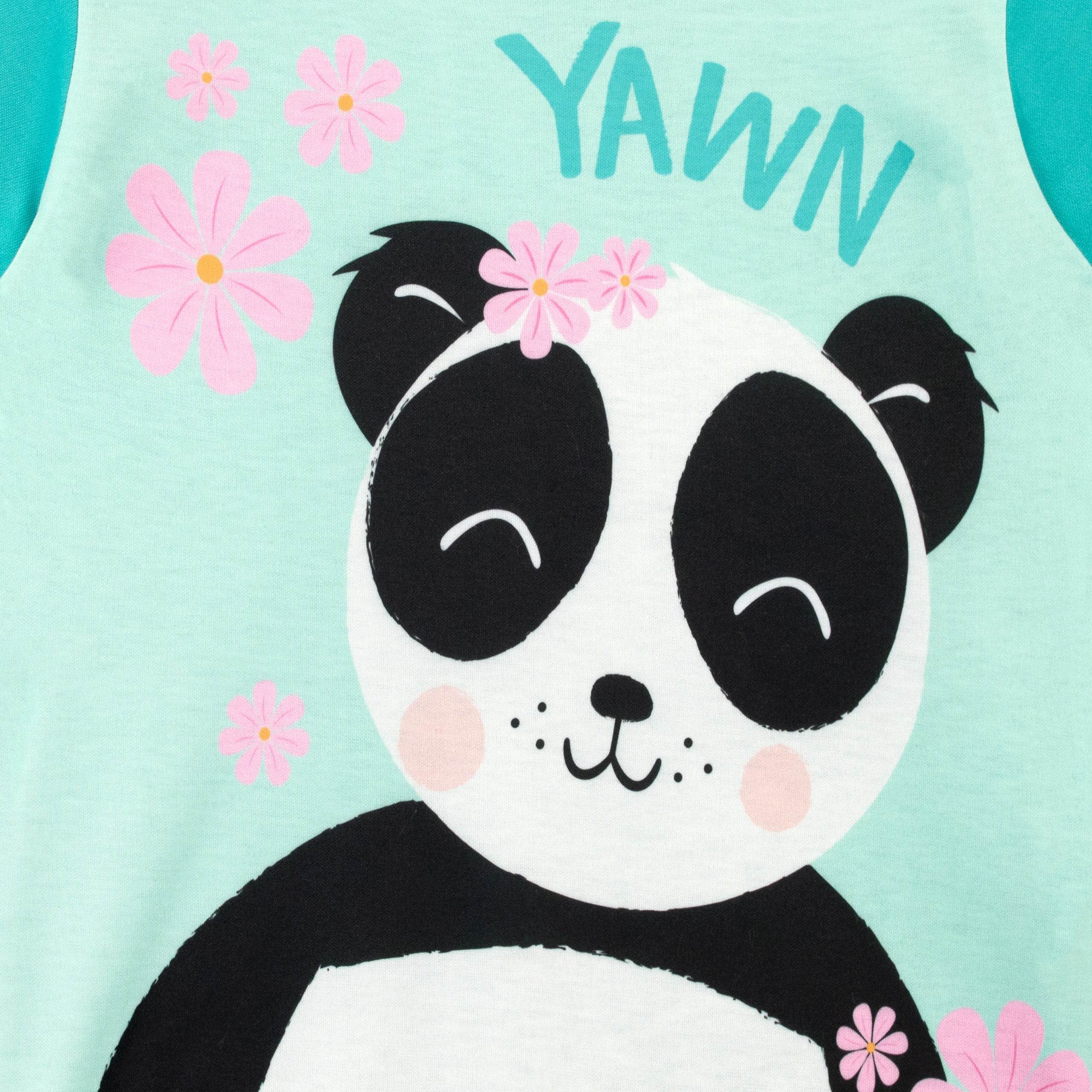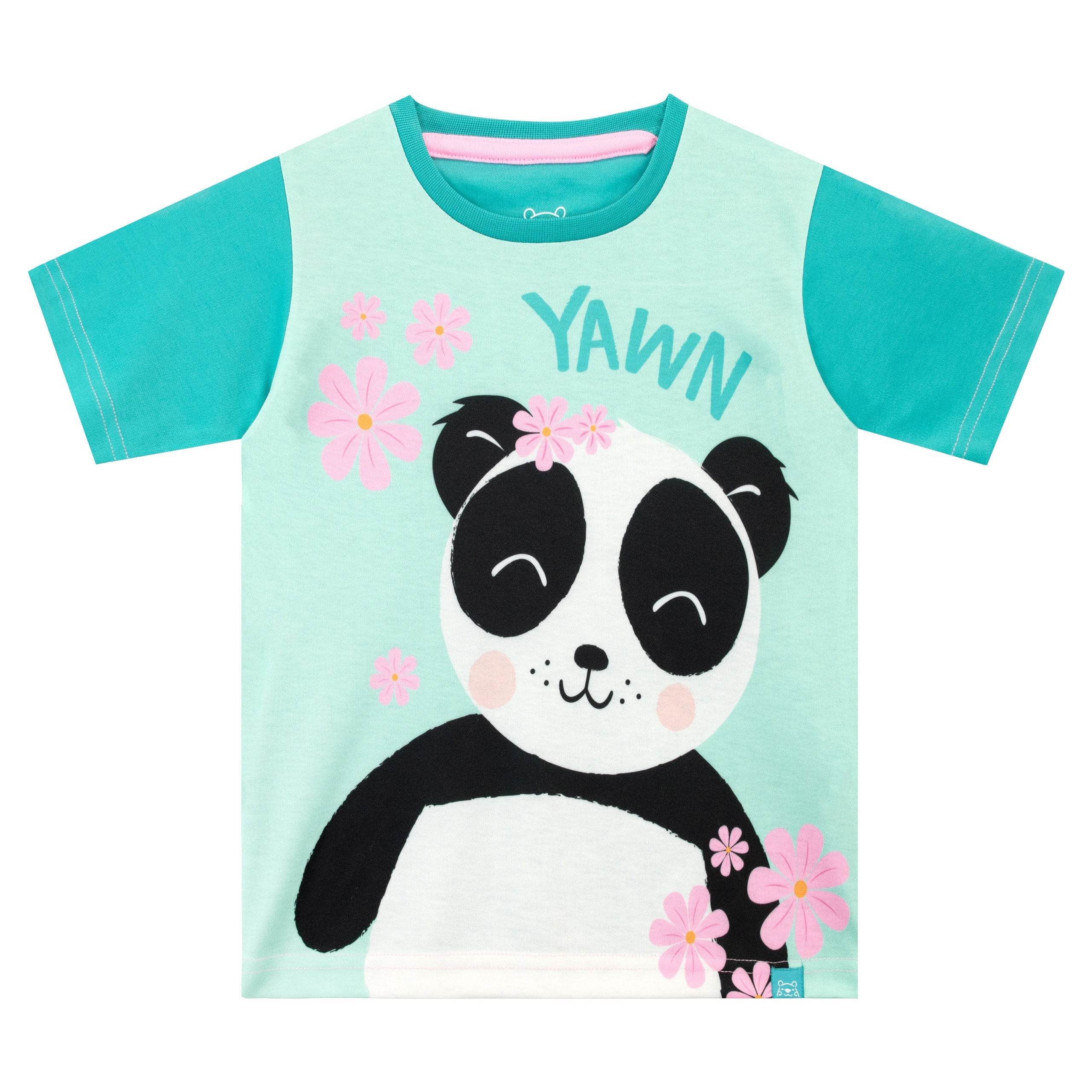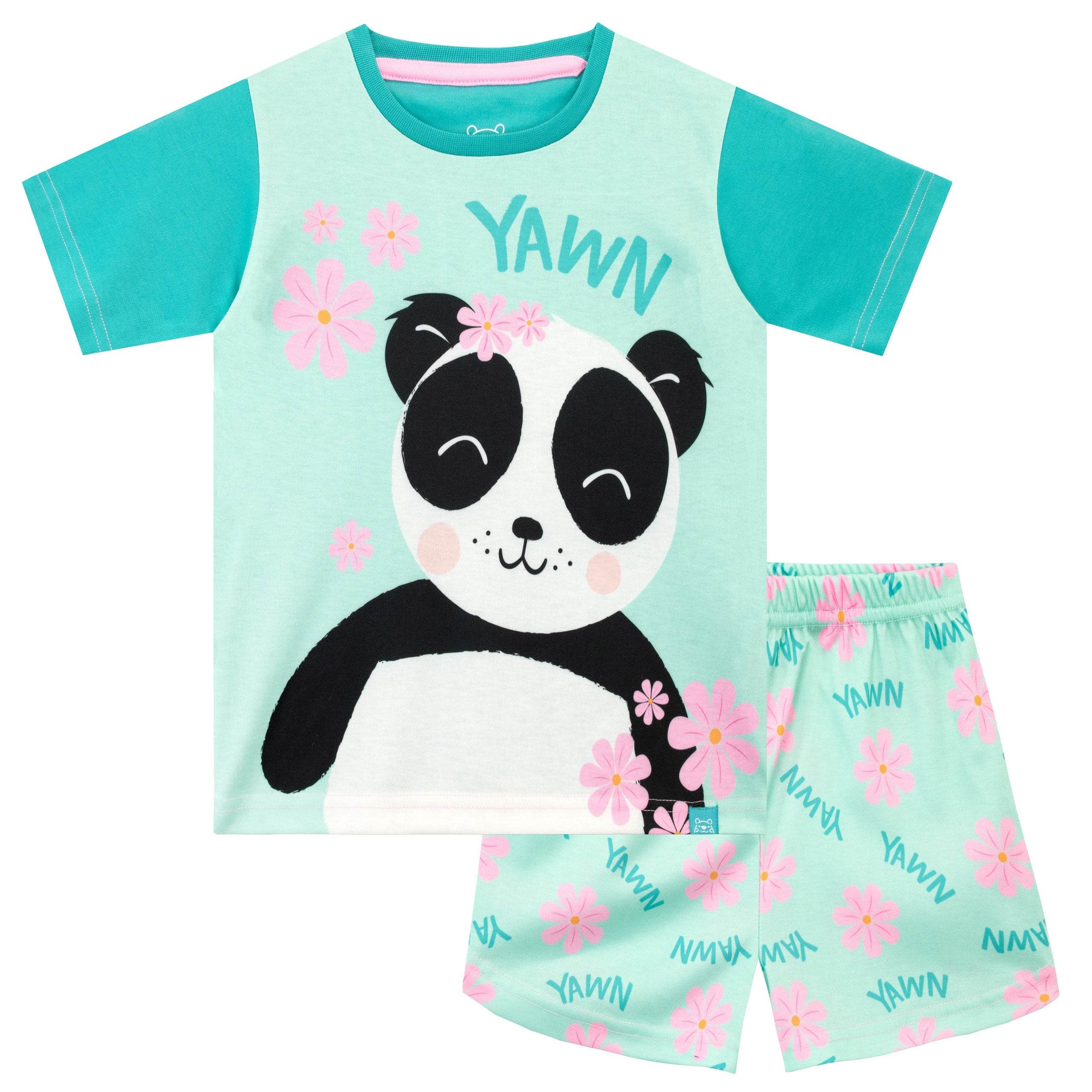 Snuggle up in these sweet Panda short pyjamas! Designed by Harry Bear, this cute and cuddly pink and aqua green short pyjama set is perfect for your little bear. The comfy short sleeve top features an adorable panda bear with pretty pink cherry blossoms and 'Yawn' written above. This soft cotton pyjama set is completed by matching flower motif shorts, perfect for any lover of these cute monochrome mammals!