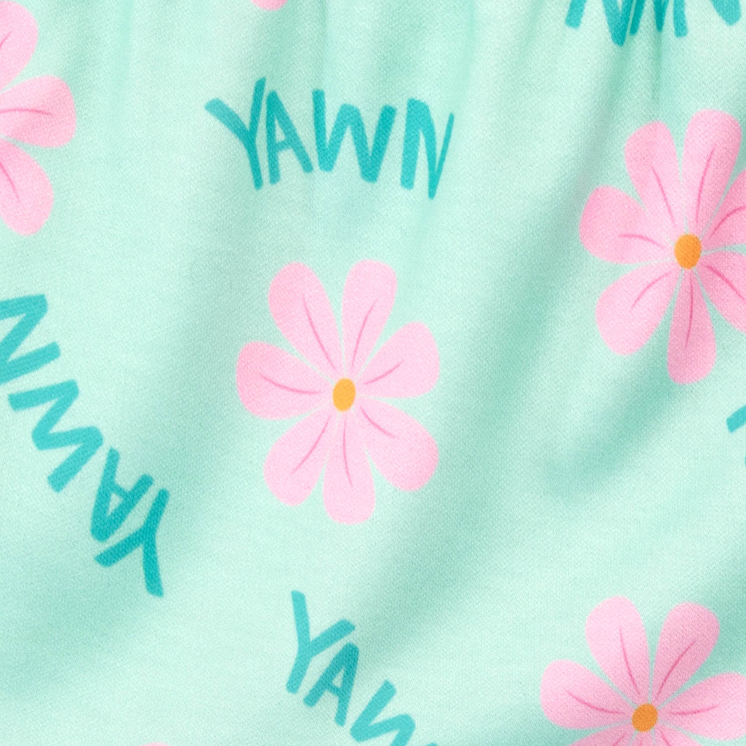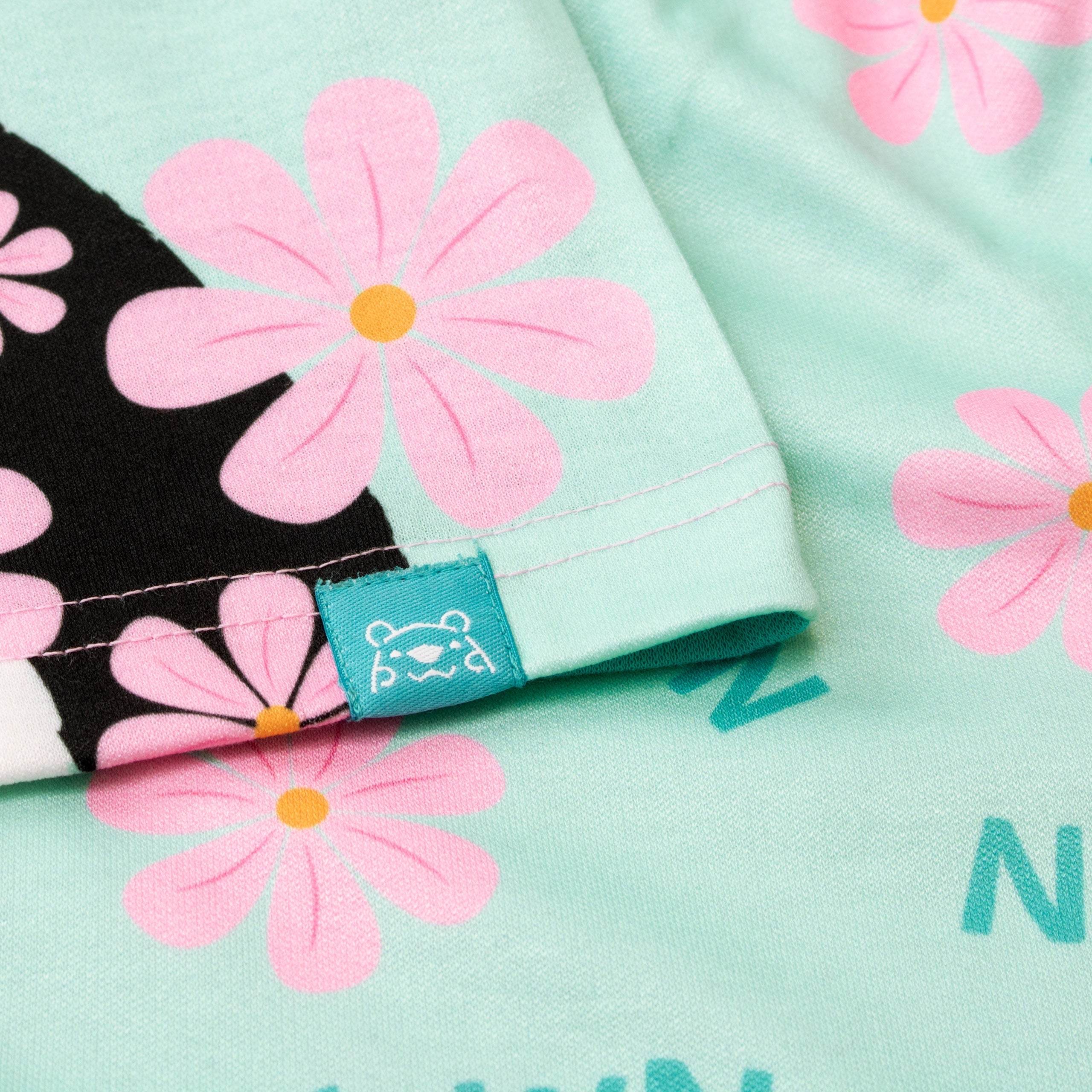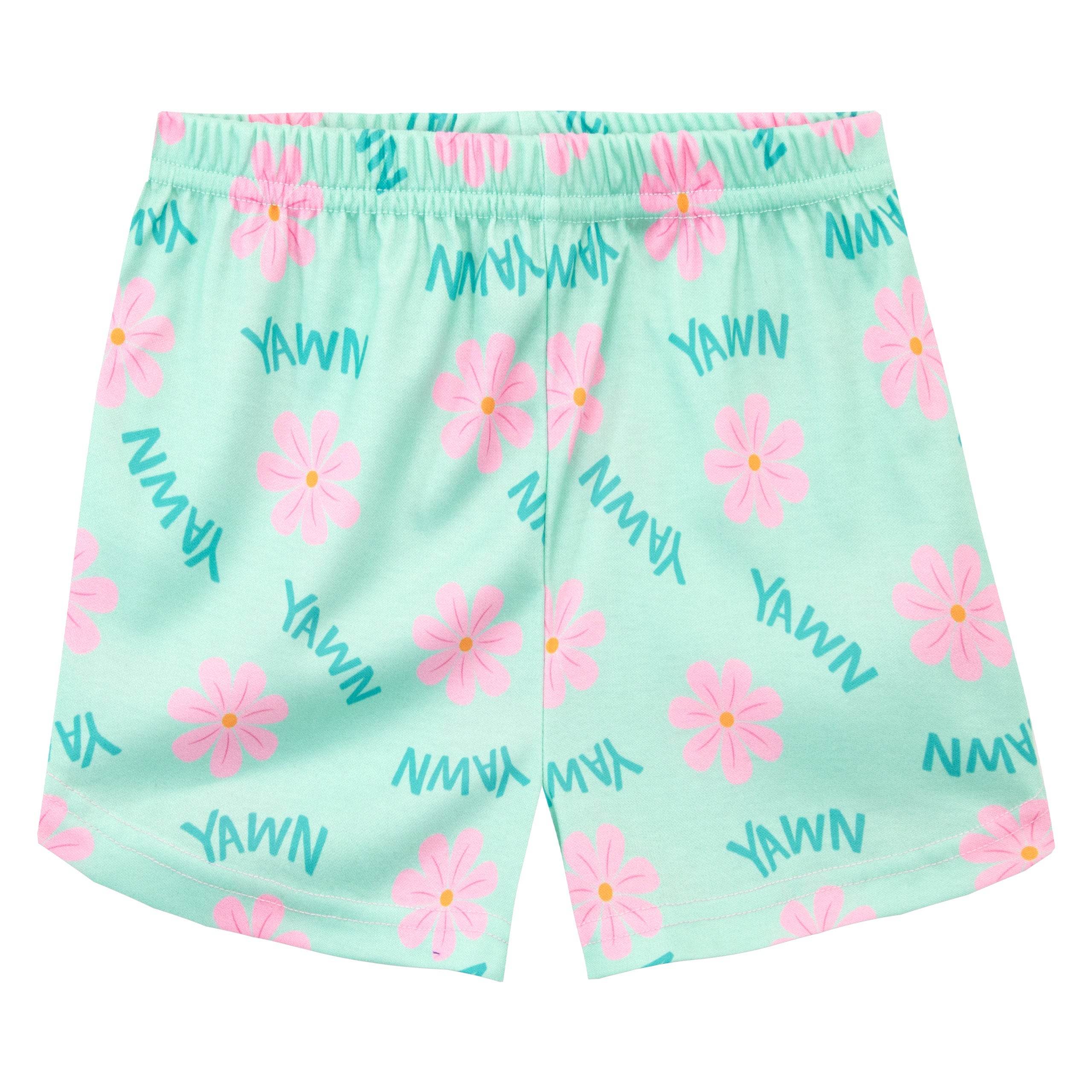 Snuggle up in these sweet Panda short pyjamas! Designed by Harry Bear, this cute and cuddly pink and aqua green short pyjama set is perfect for your little bear. The comfy short sleeve top features an adorable panda bear with pretty pink cherry blossoms and 'Yawn' written above. This soft cotton pyjama set is completed by matching flower motif shorts, perfect for any lover of these cute monochrome mammals!