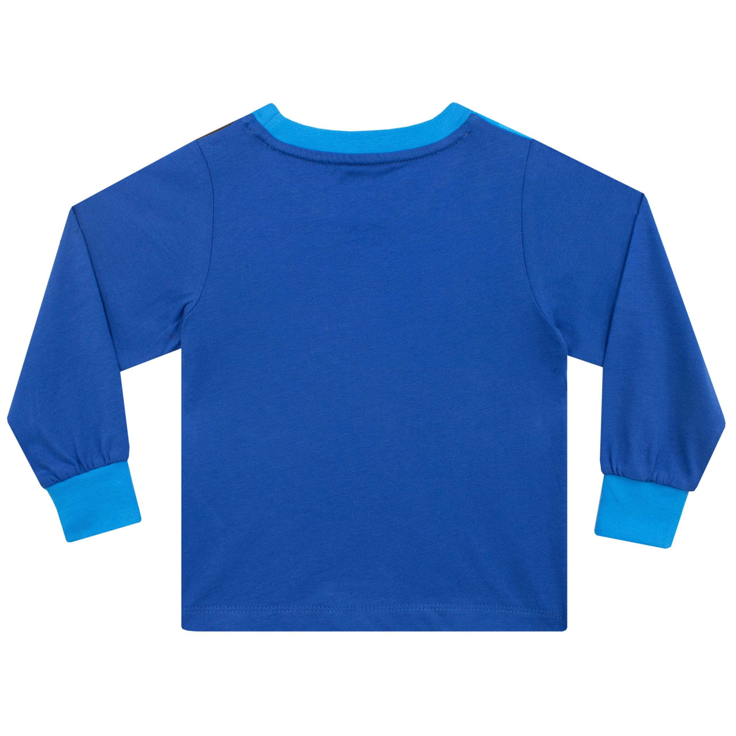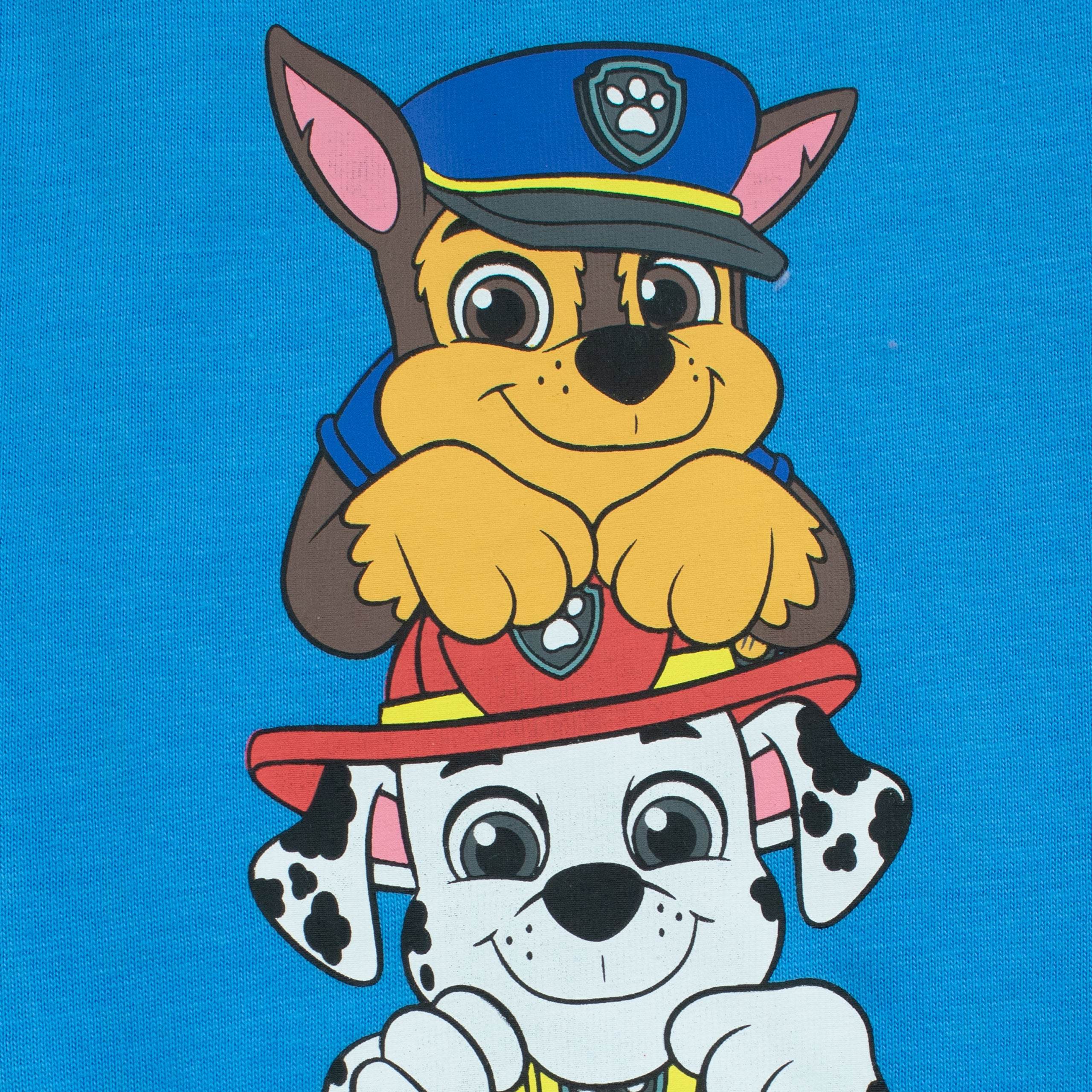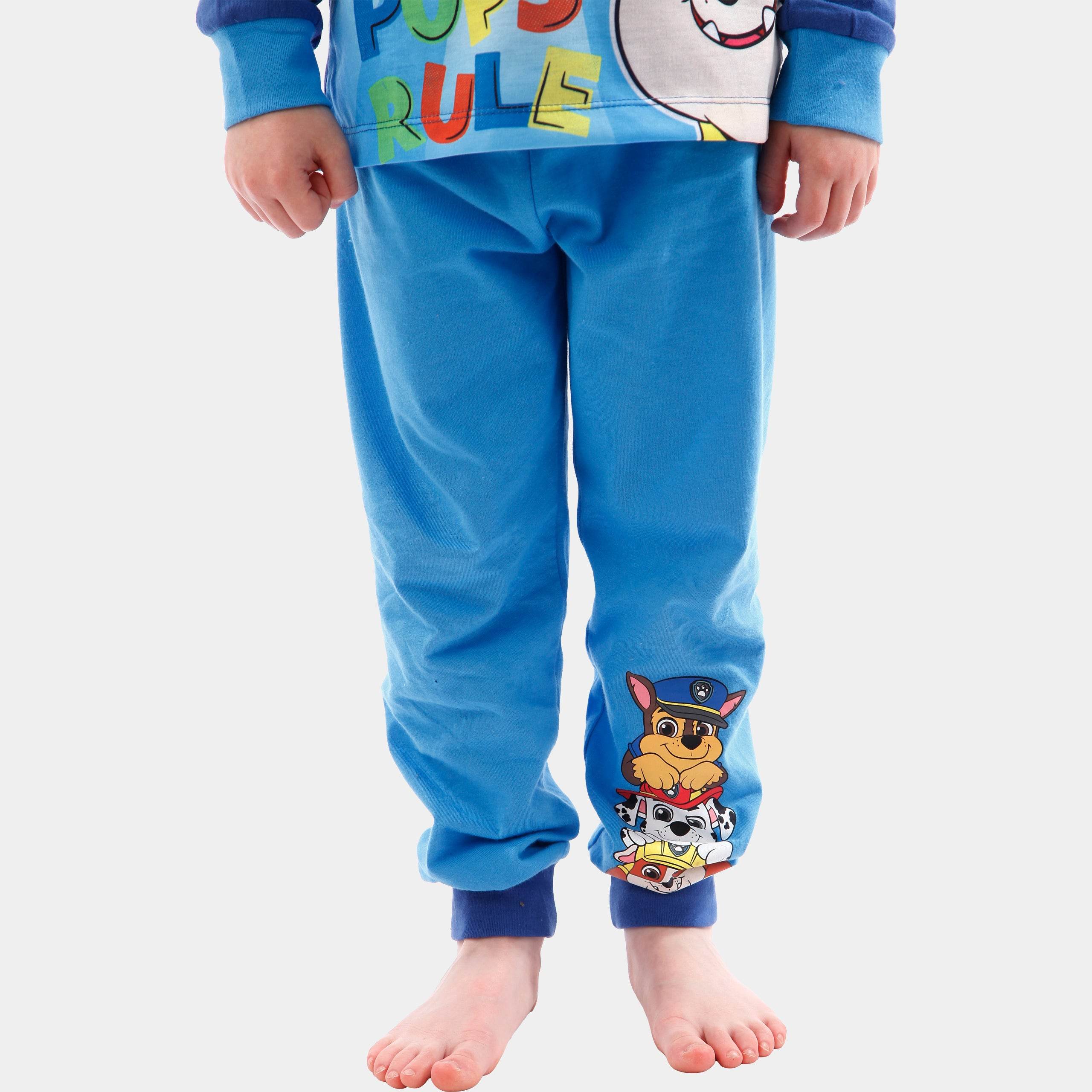 • PJ set showcasing Chase, Marshall, and Rubble with "Pups Rule" multicolour writing and multicolour paw prints on the pyjama top.