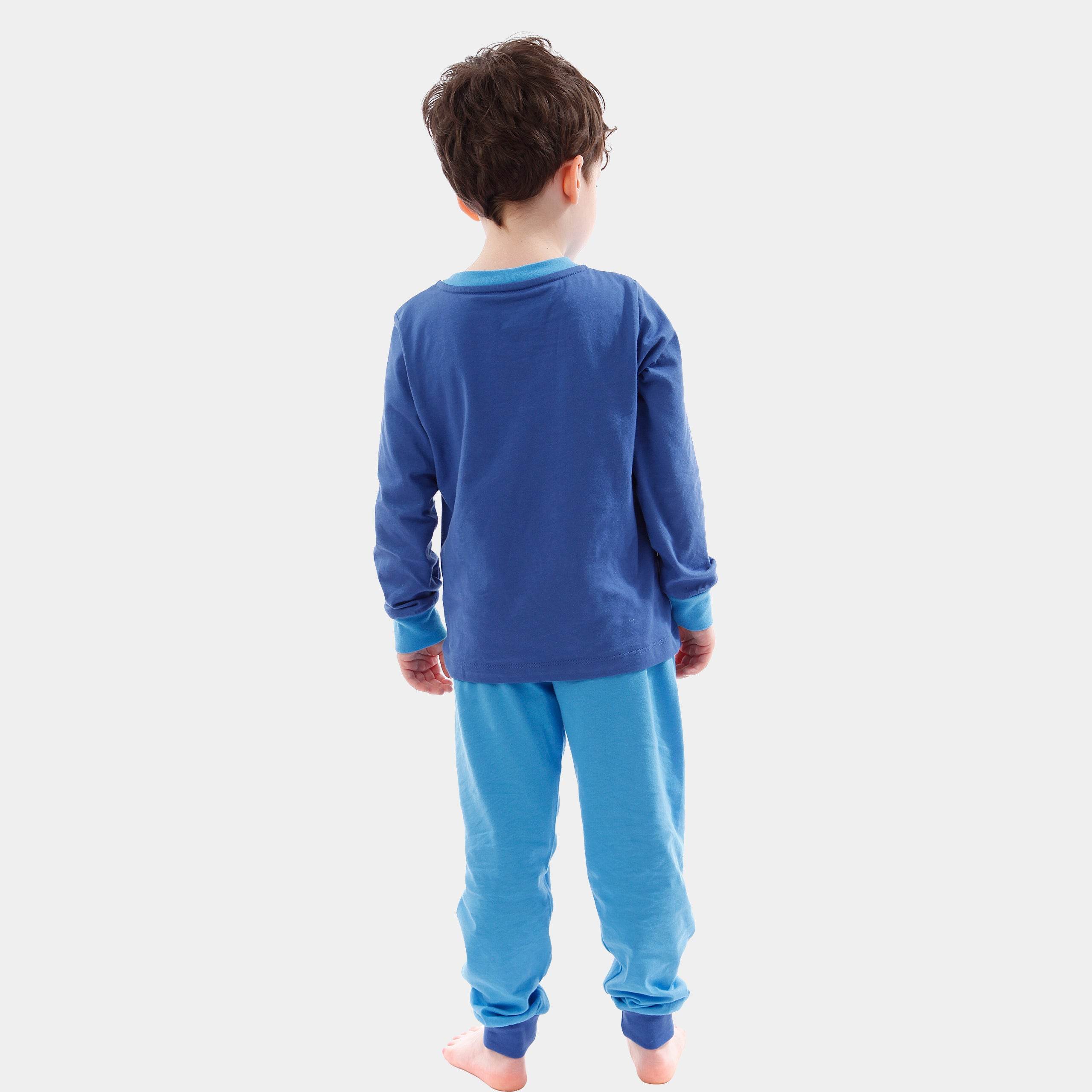 Introducing the ultimate Paw Patrol dressing gown and pyjamas Set for boys! The luxurious dark blue dressing gown is adorned with pale blue accents on its waistband and hood, ensuring a snug fit, and proudly displays the iconic Paw Patrol logo. The pyjama top captivates with vibrant images of Chase, Marshall, and Rubble, surrounded by playful paw prints and the cheerful declaration "Pups Rule" in multicoloured lettering. Rounding out the set, the PJ bottoms have an exclusive design featuring Chase, Marshall, and Rubble on the left leg. This is the perfect ensemble for any young Paw Patrol fan.