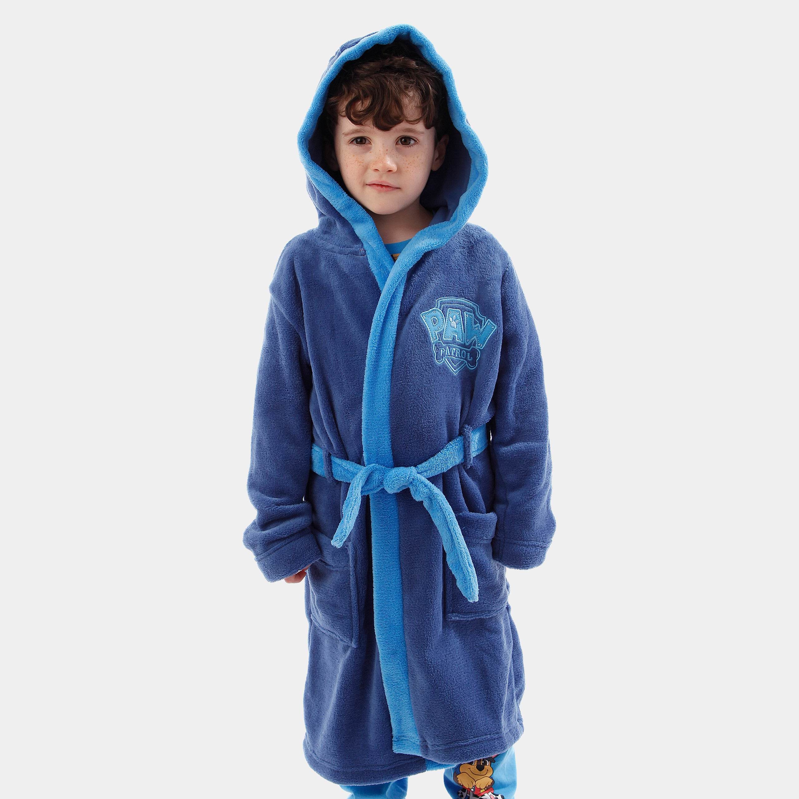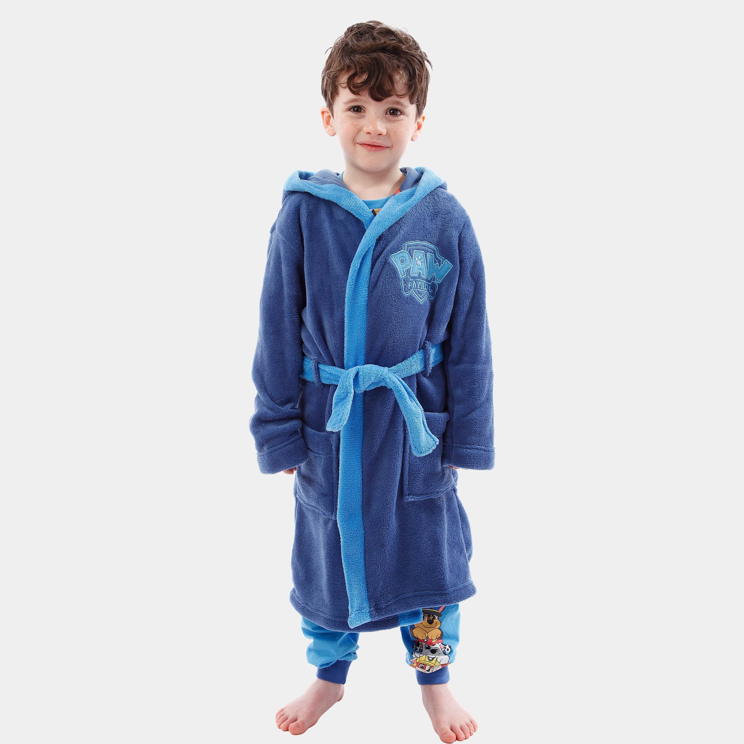 • Dark blue dressing gown with pale blue accents and official Paw Patrol logo embroidered on the front.