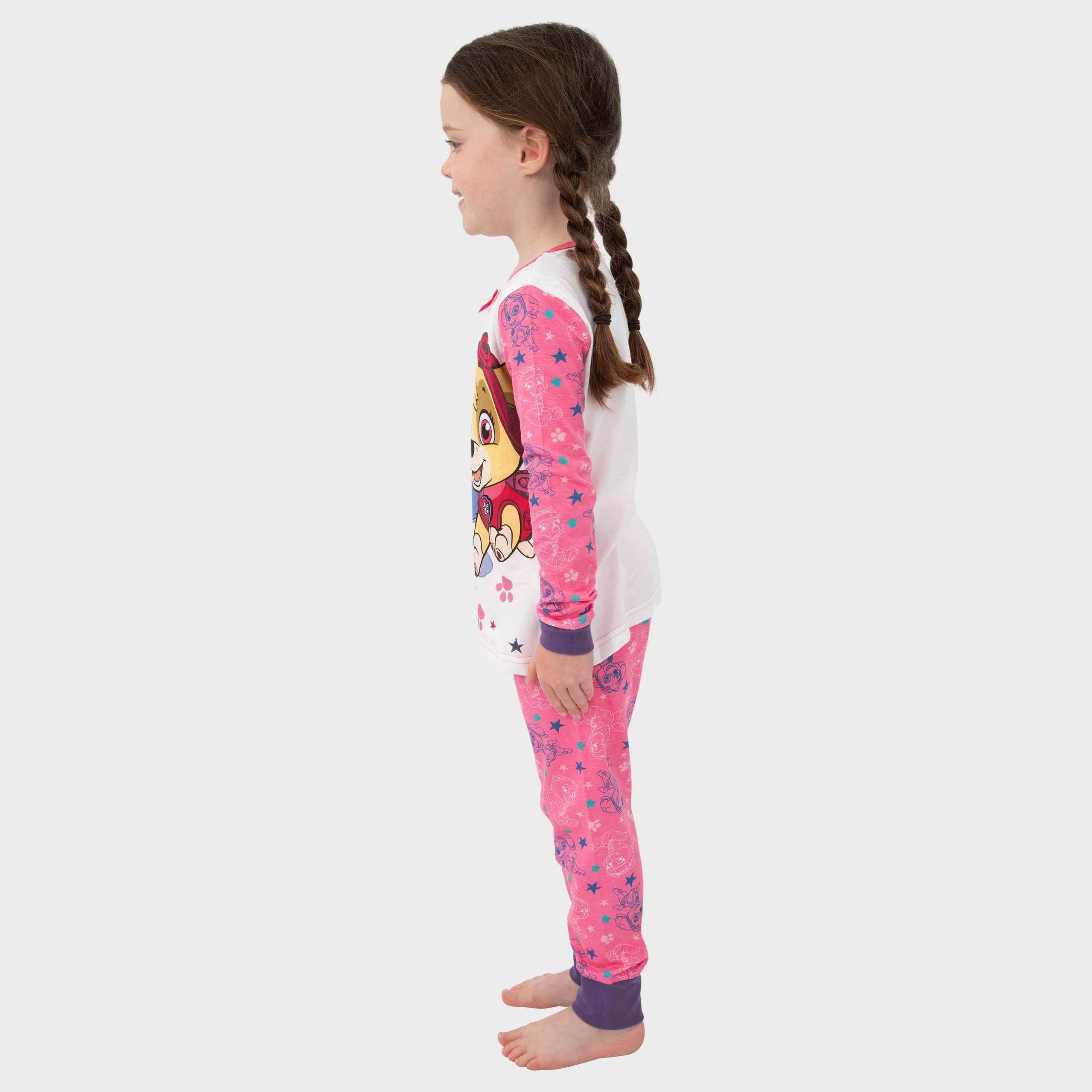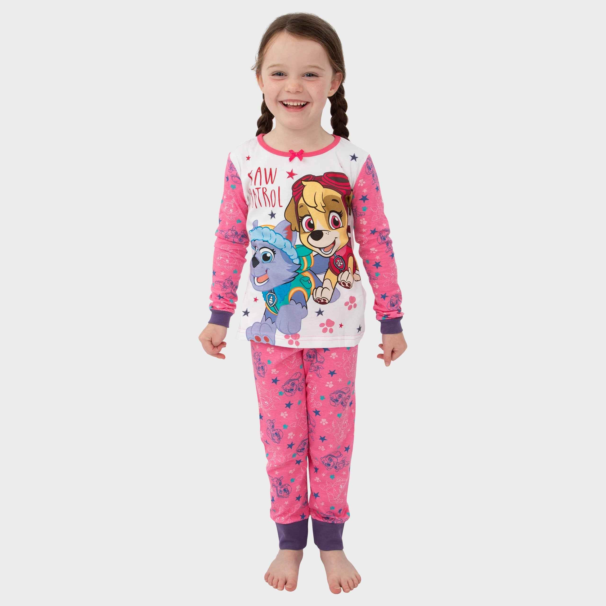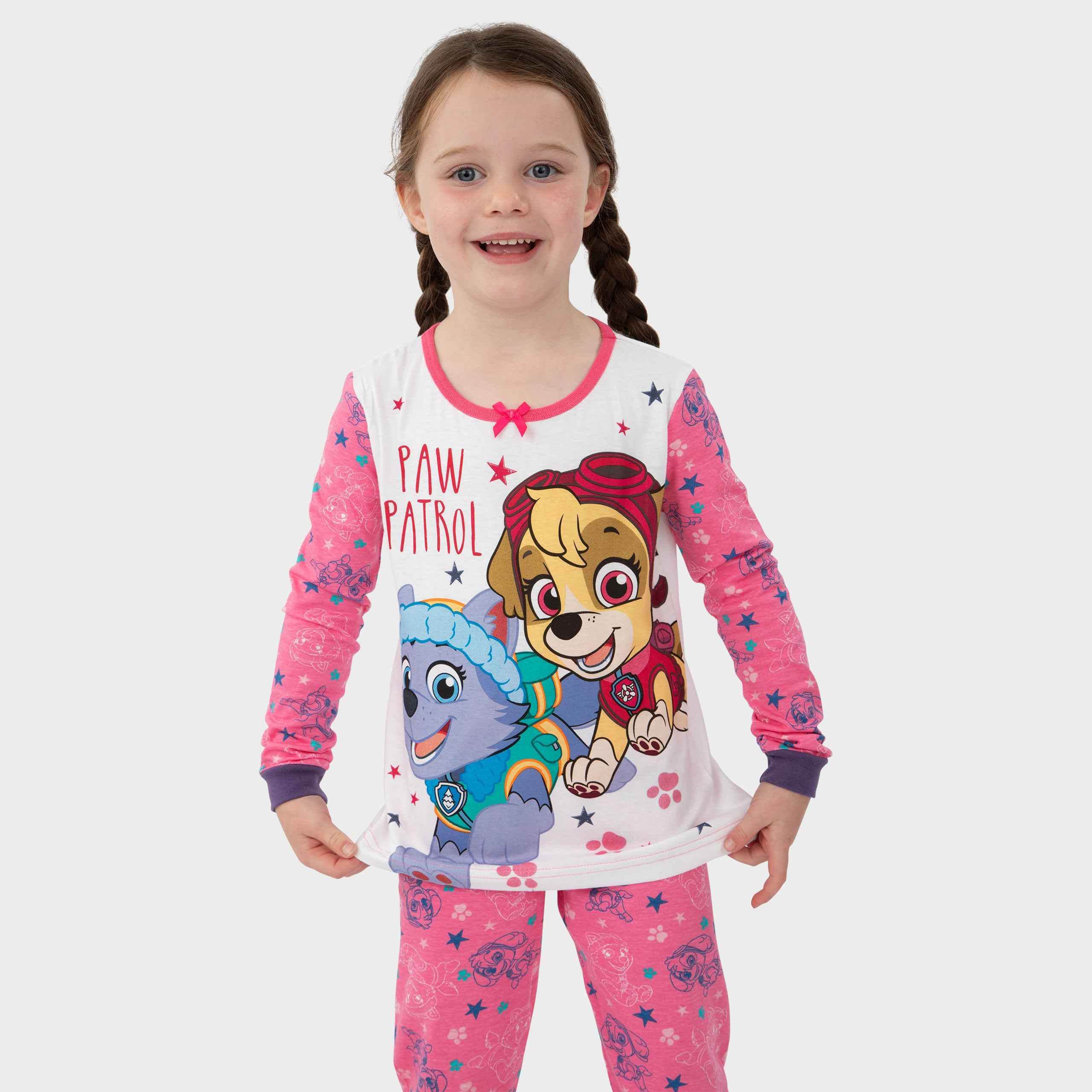 Your little Paw Patrol fan will be looking PAW-TASTIC in these adorable pink Paw Patrol pyjamas! Featuring the cute and fearless pups Skye and Everest, this pyjama set is perfect for little pups who follow the Paw Patrol family, and it includes a vibrant long sleeved top and long legged cuffed bottoms. Made from 100% cotton, these adorable pink and purple Paw Patrol pjs come with star and paw details that will make your little one think they're Pawesome!