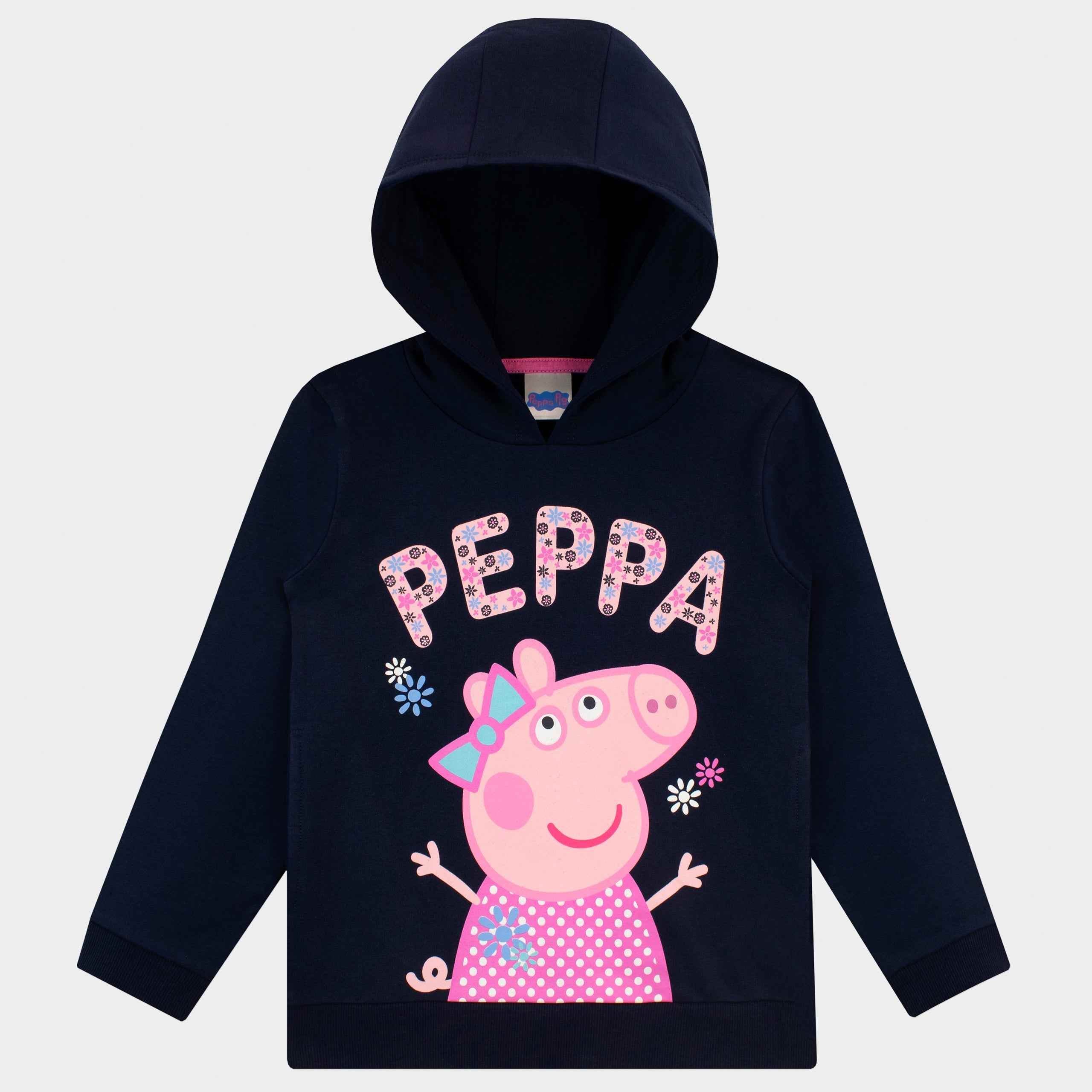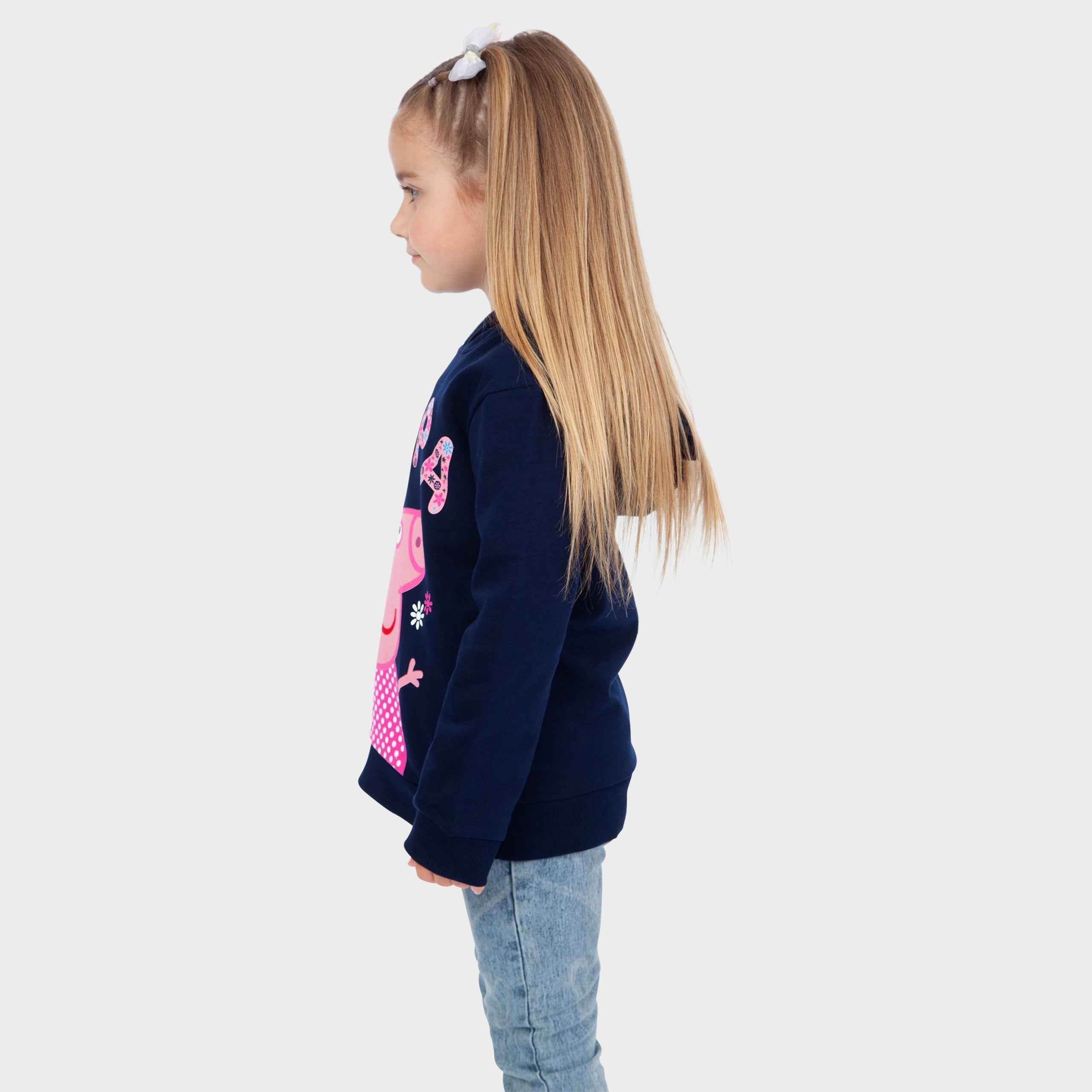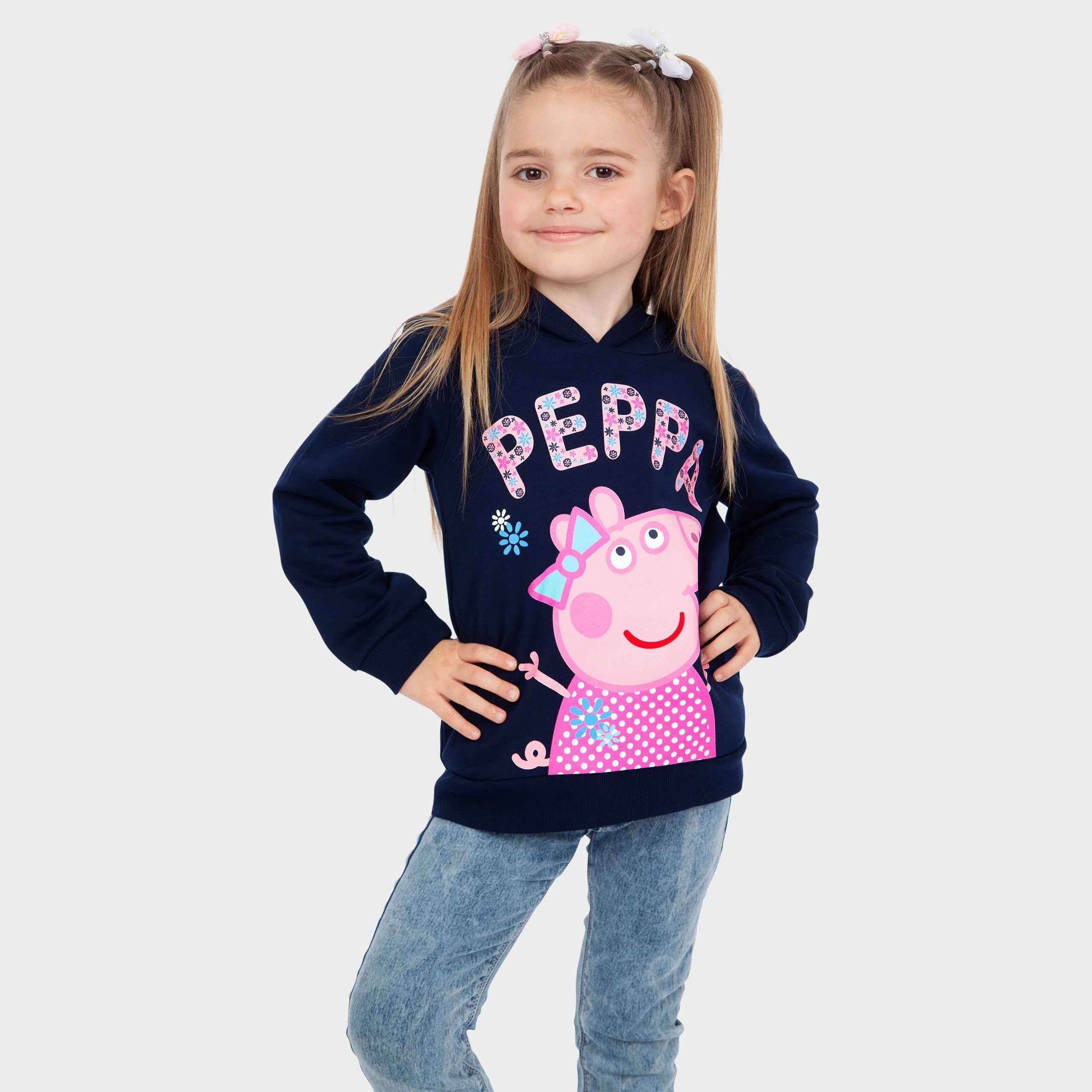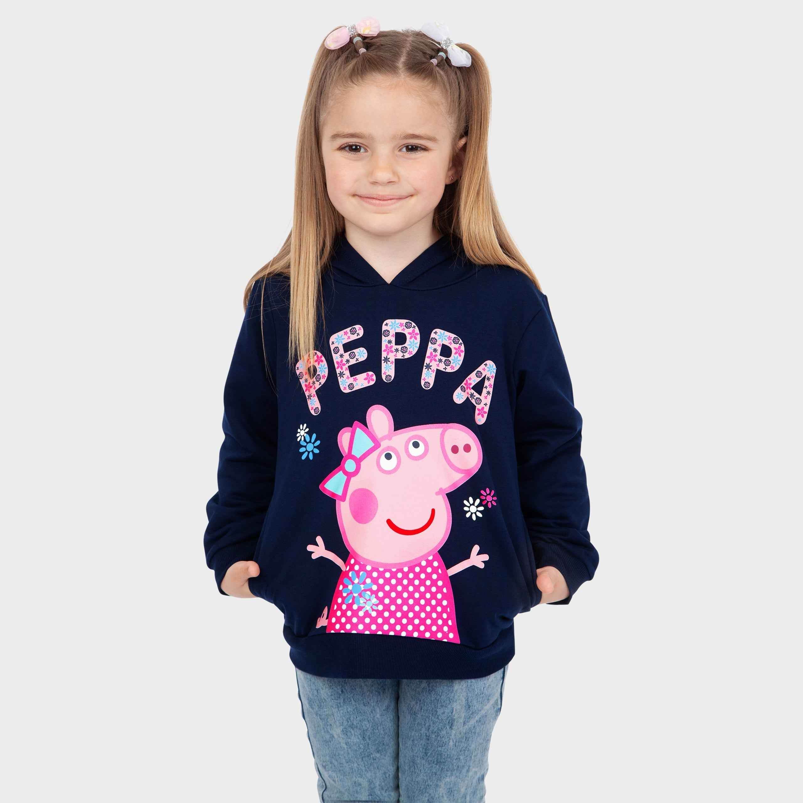Any little Peppa Pig fan will love staying snug in this adorable navy Peppa Pig hoody! A cute sweatshirt that features a large print of the lovable piglet with her name in pink surrounded by flowery detailing. This comfy jumper is made of a high quality cotton blend and comes with a cosy hood and side pockets. Make going out look extra cute with this Peppa-tacular sweater!