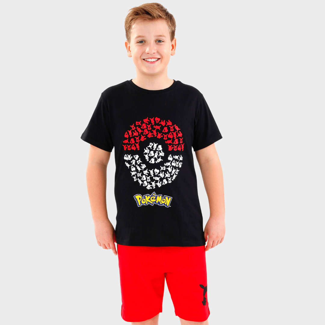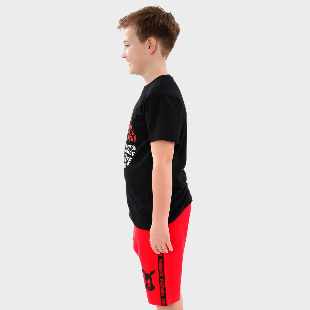 Young Pokmon trainers will love to venture out on an exciting expedition in this awesome Pokmon t-shirt and shorts set! The black short sleeve tee showcases the Pokmon logo and a Pokeball made up of little Pikachu prints. The matching red shorts feature black Pokmon side taping and a print of Pikachu on the left leg, with an elasticated waistband for extra comfort! Fans of the iconic video game franchise are sure to catch 'em all in this amazing Pokemon outfit!