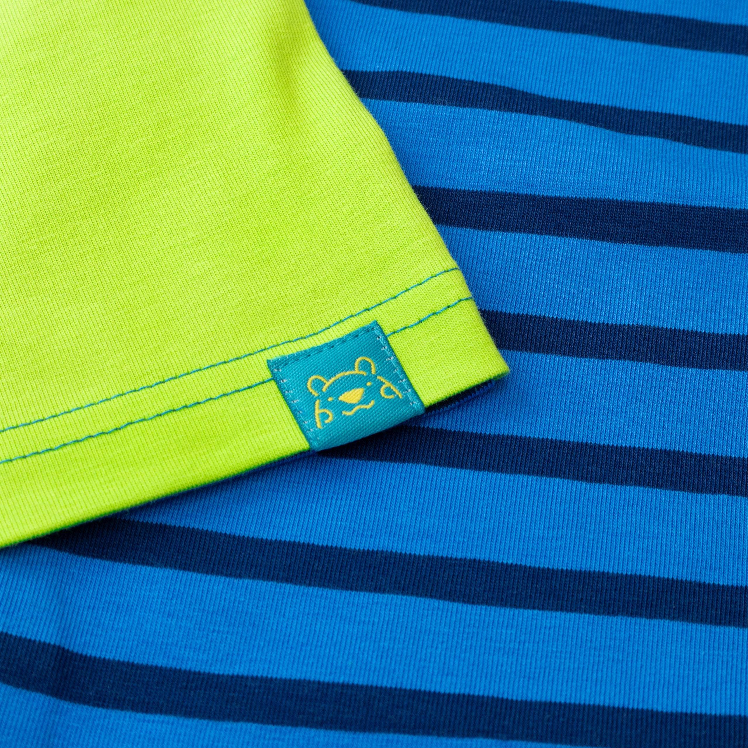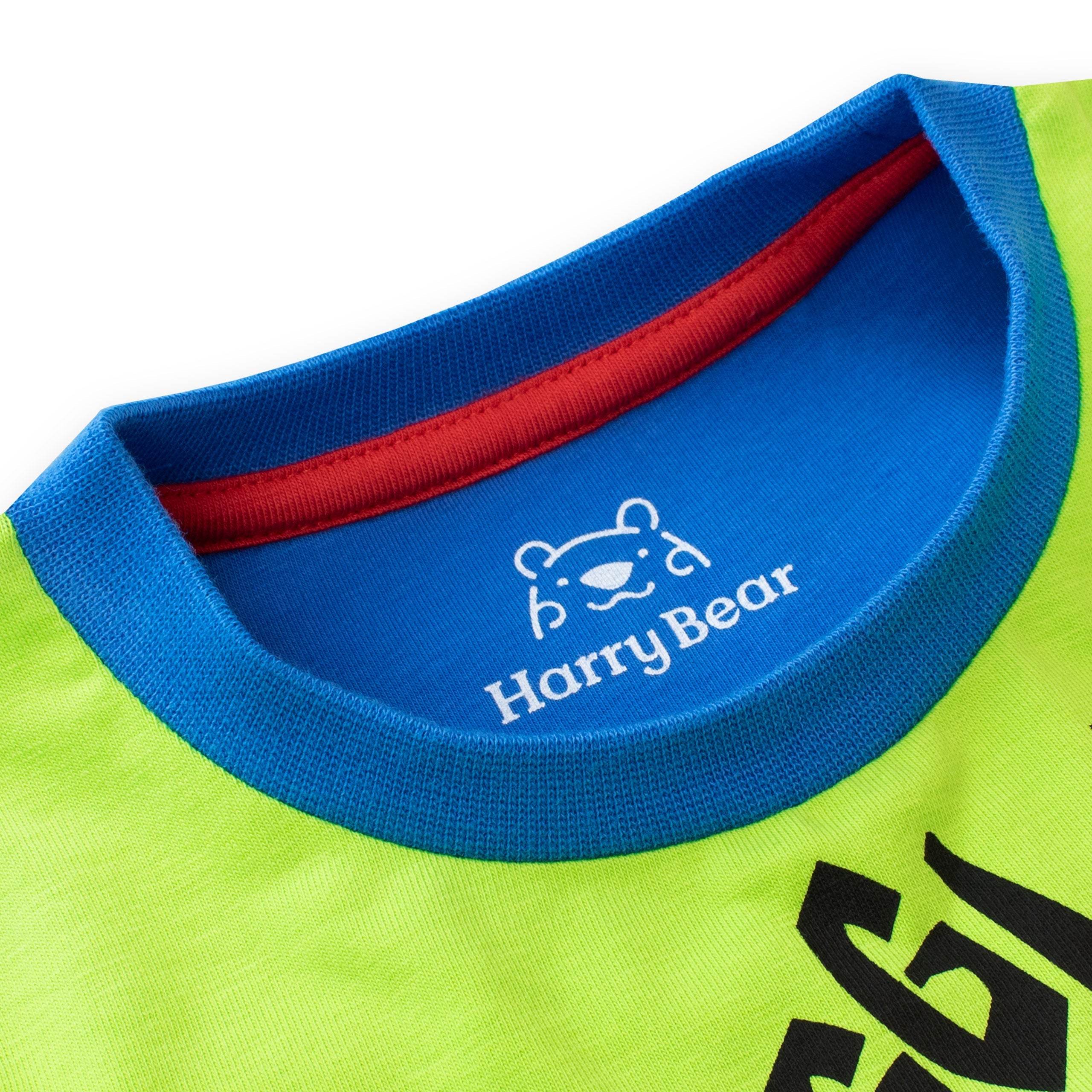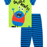 Ghouls, ogres, and gremlins, oh my! Freaky fiends far and wide will be jumping into this grr-eat pyjama set! Designed by Harry Bear this vibrant pyjama showcases a fun design of a not-so-scary monster on a bright green top with blue striped sleeves and back and the slogan 'Snuggle Monster'. Teamed with striped bottoms in shades of blue, these PJs are perfect for your tiny terror!