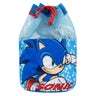 Make a splash with the Kids Sonic Swimbag, perfect for young Sonic fans! This drawstring bag features an energetic design with Sonic sprinting across a dynamic background of light blue and white squares, bringing a sense of adventure to swim time. The word 'Sonic' pops in contrasting red, perfectly matching the swim bag's vibrant red ties. Durable, fun, and unmistakably Sonic, it's an ideal companion for pool days, beach trips, or any aquatic escapades!