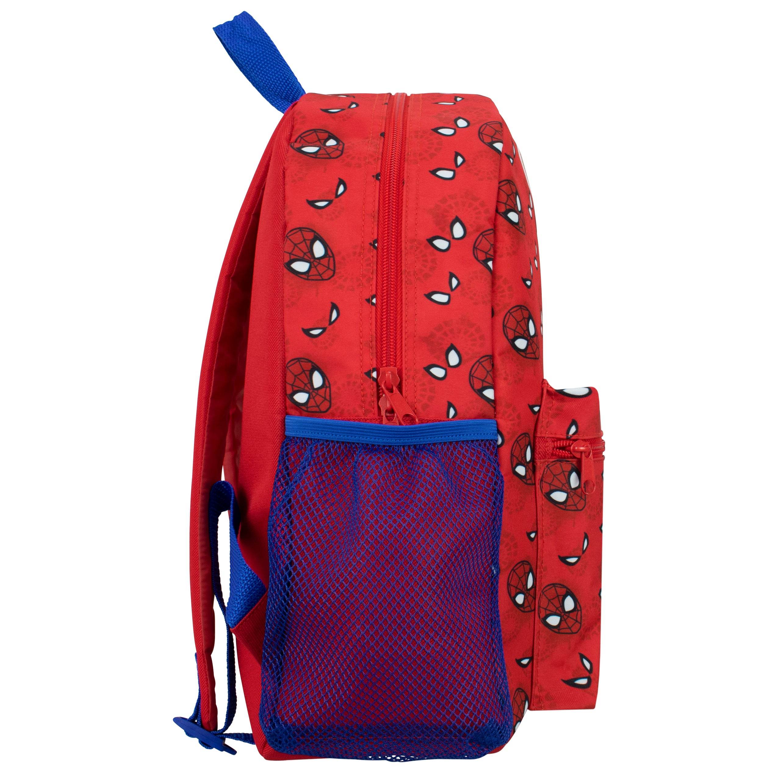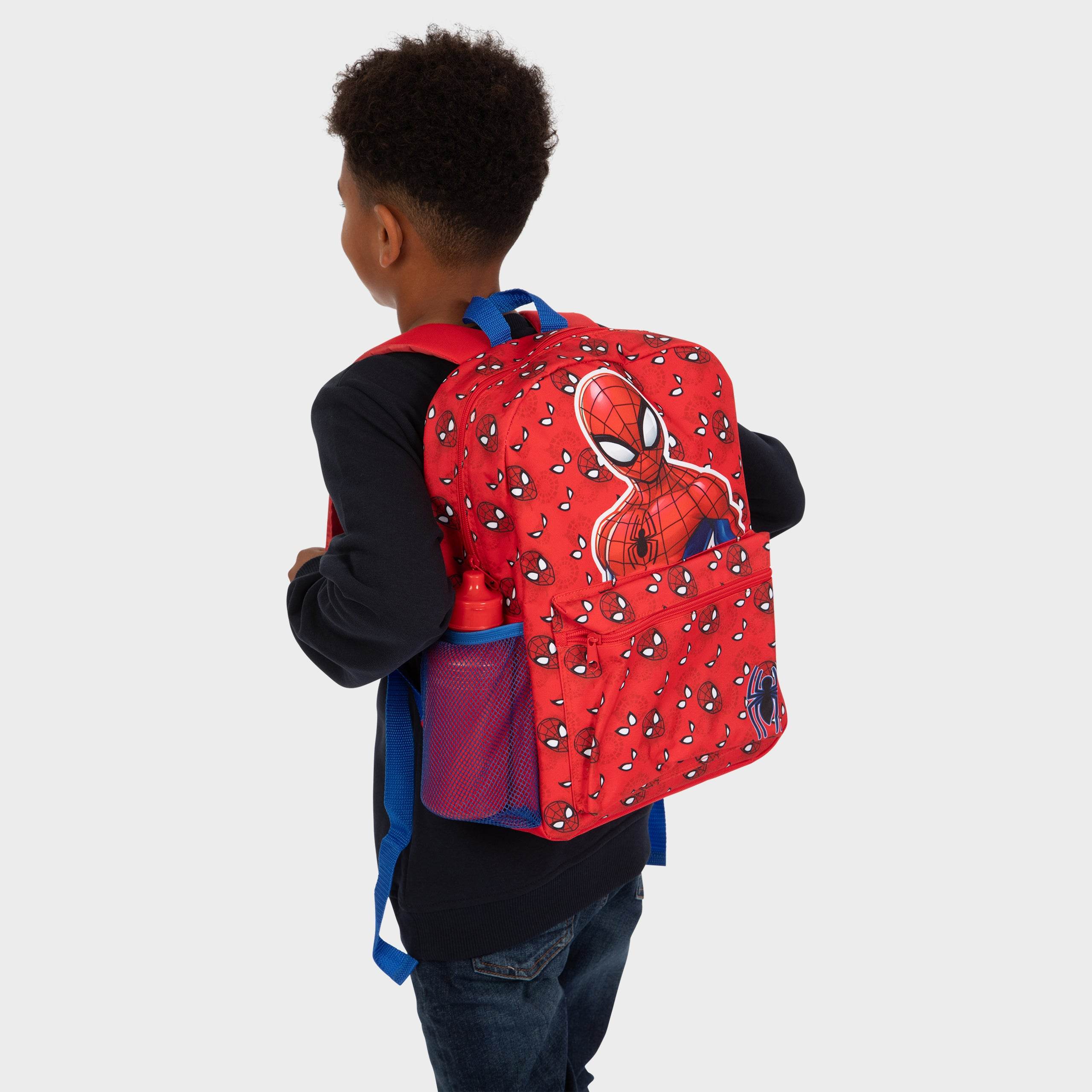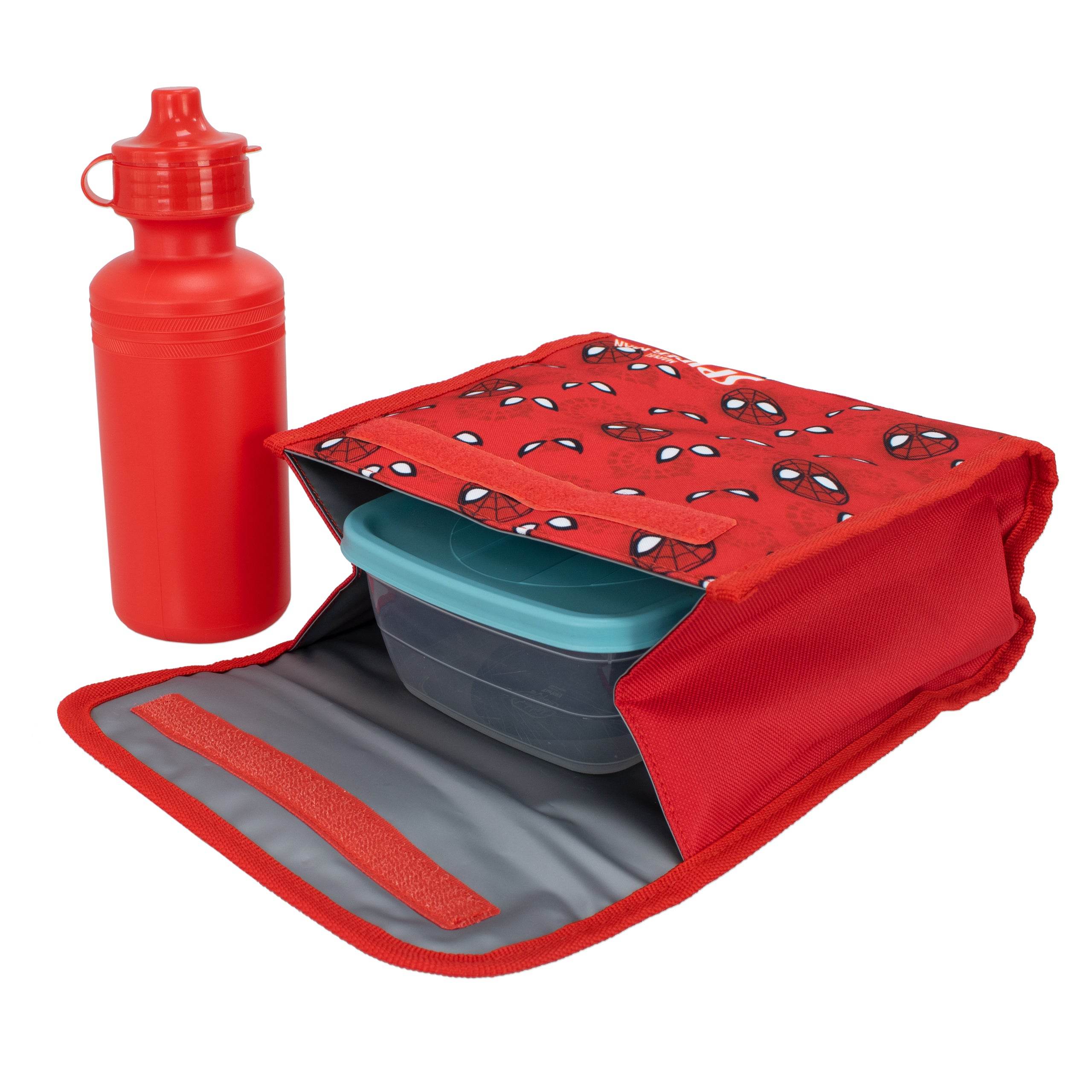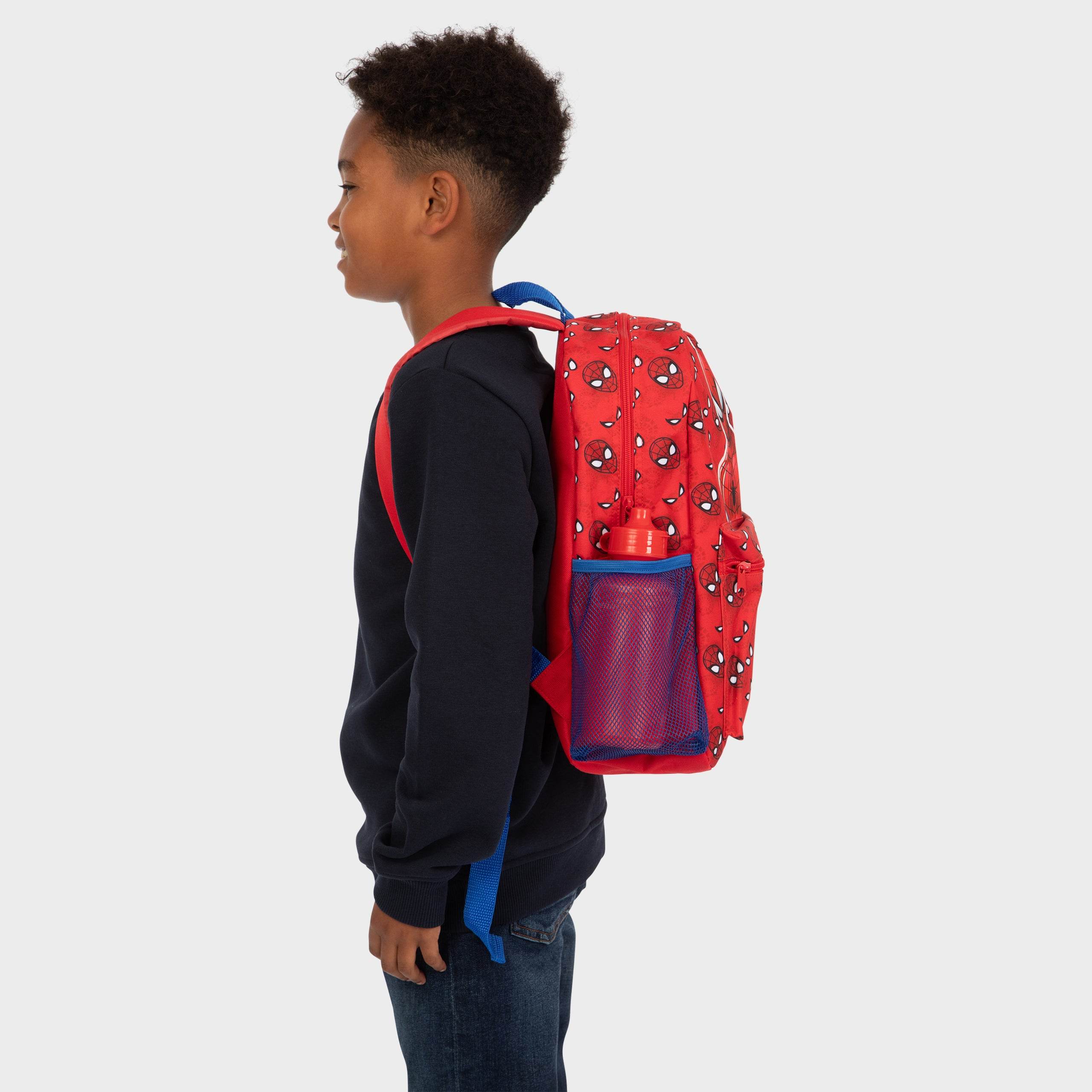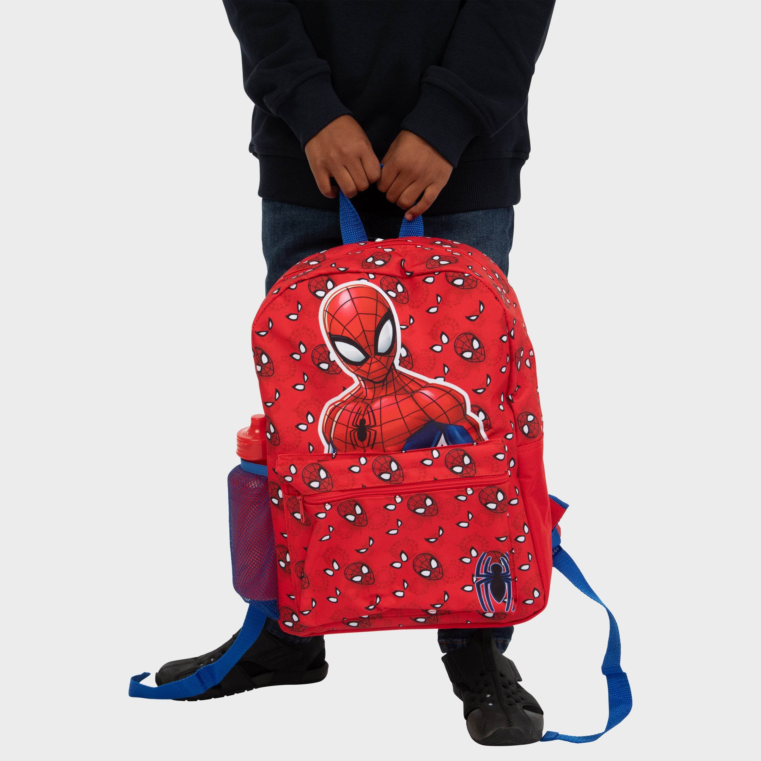 • Versatility meets style with this comprehensive set, including a backpack with a large front pocket and side mesh pocket, a lunch bag adorned with a Marvel Spider-Man logo, and a matching pencil case, plus a vibrant red water bottle - your all-in-one solution for school essentials!