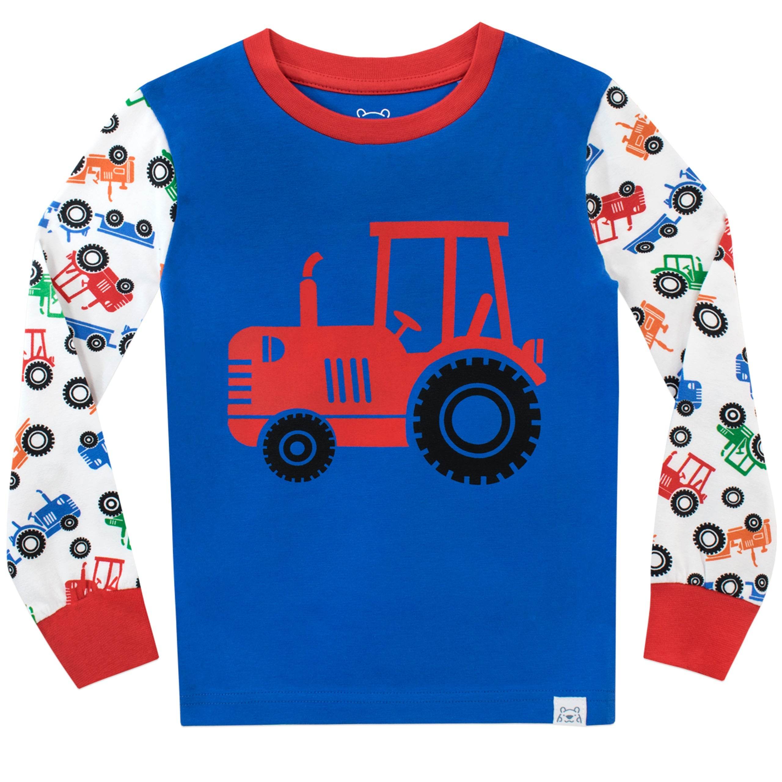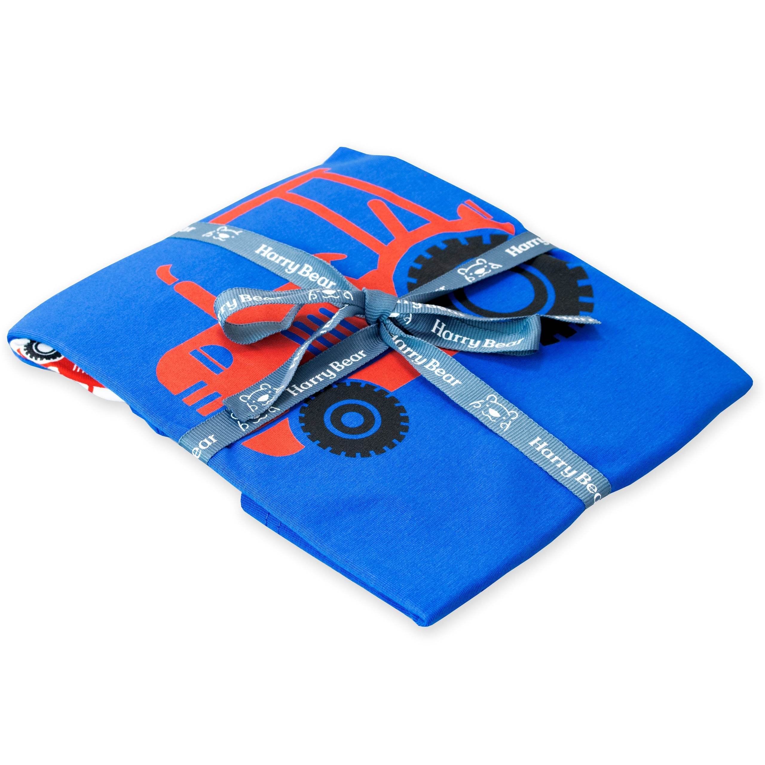 Designed by Harry Bear, these fun and colourful boys pjs showcase a bold motif of farm tractor silhouettes on the sleeves and bottoms alongside a large main print on the top. These eye-poppingly cool tractor pyjamas are guaranteed to have bedtime rolling!