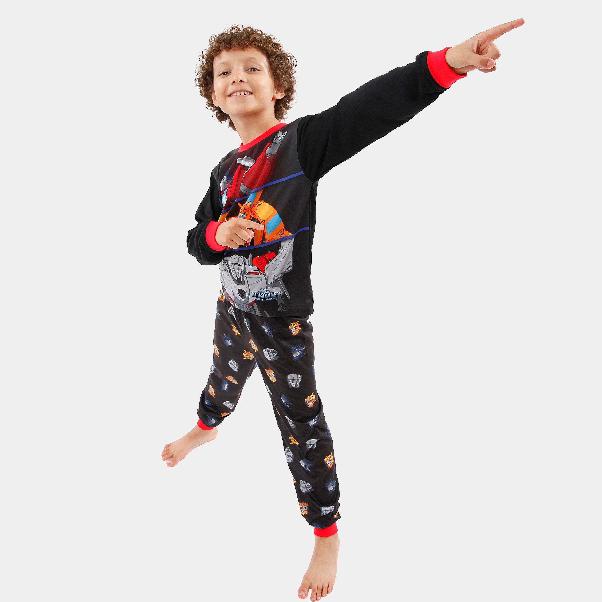 • Enjoy adventurous sleepovers and brave bedtime tales with a vibrant pj top and super cool bottoms decked in a repeating pattern of transforming fun over a sleek black background!