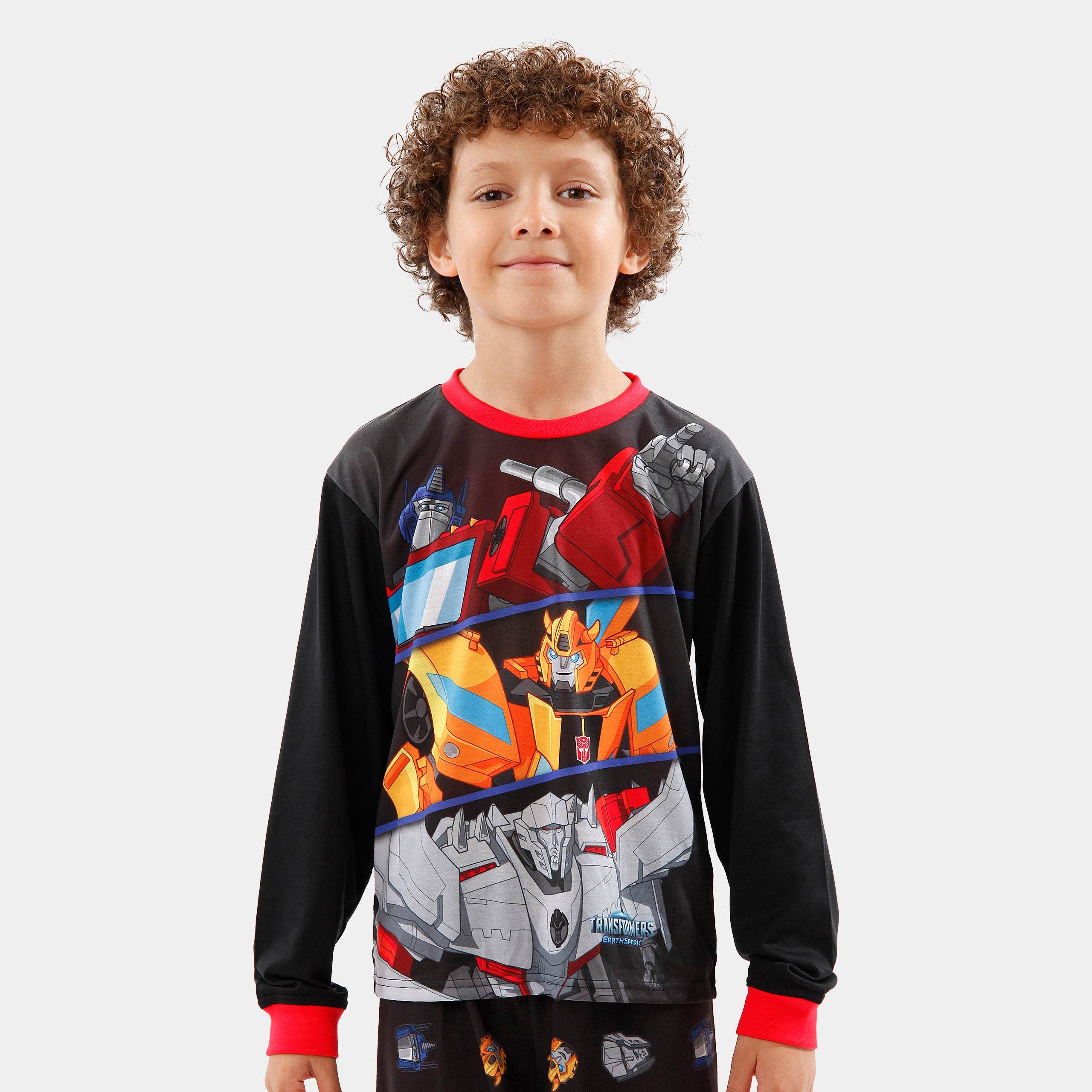 Roll out to bed in style, little Transformer fan, with our super cool Transformers Pyjamas! Your dreams will light up with adventures featuring Optimus Prime, Bumblebee, and Megatron on your cozy pyjama top and a repeating robot pattern on your snug pj bottoms. The fun black sleeves and dynamic designs over a dark background will make every night a heroic tale! Ideal for sleepovers, dreamy adventures, and restful nights after a day of play, these PJs are your perfect sidekick for all your nighttime adventures!