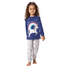 Fill their dreams with magic and wonder with these beautiful unicorn jammies! Designed by Harry Bear, this pyjama set includes a blue long-sleeved top with a stylish gathered frill on the shoulders, showcasing a unicorn with a glittery silver mane and tail, along with a rainbow and stars and the slogan 'Dream like a Unicorn'. Paired with light grey pj bottoms patterned with unicorns, rainbows and stars, with a cute pink bow on the front of the waistband and elasticated cuffs for extra comfort. Your little fairytale fan will love to sparkle all night in these enchanting PJs! Finished with a hand-tied Harry Bear ribbon to make the perfect gift.