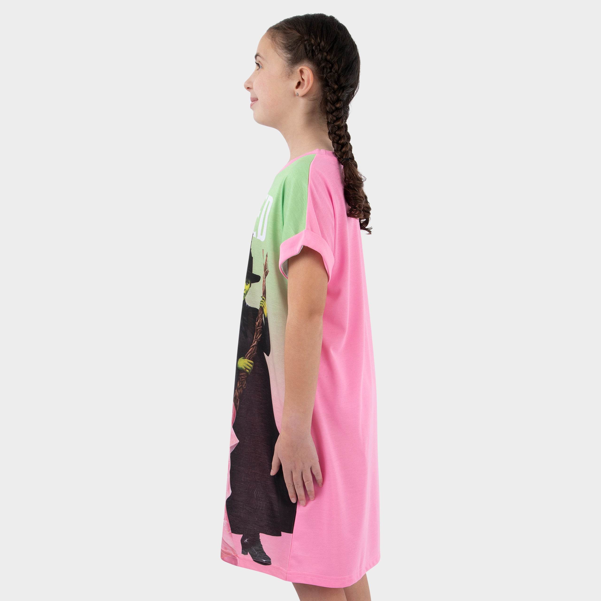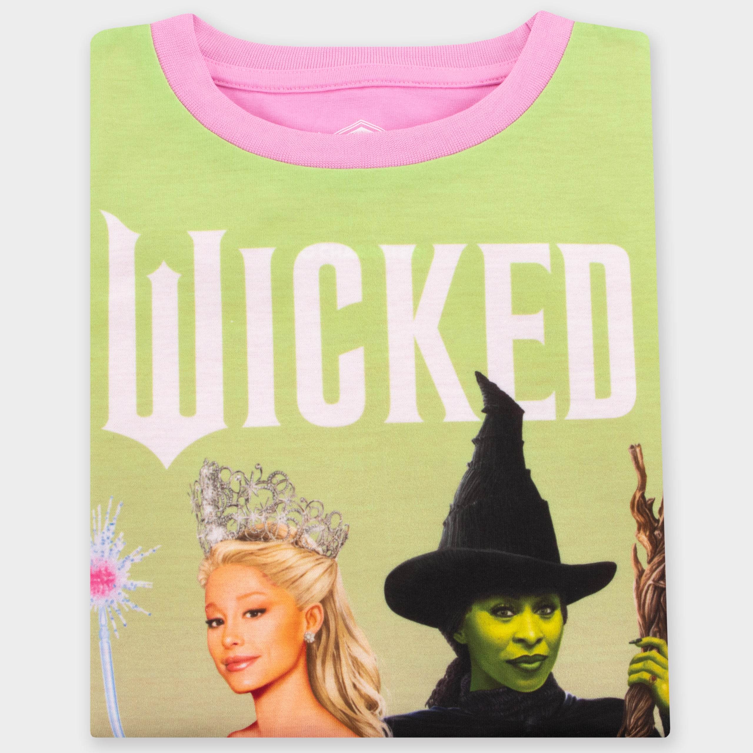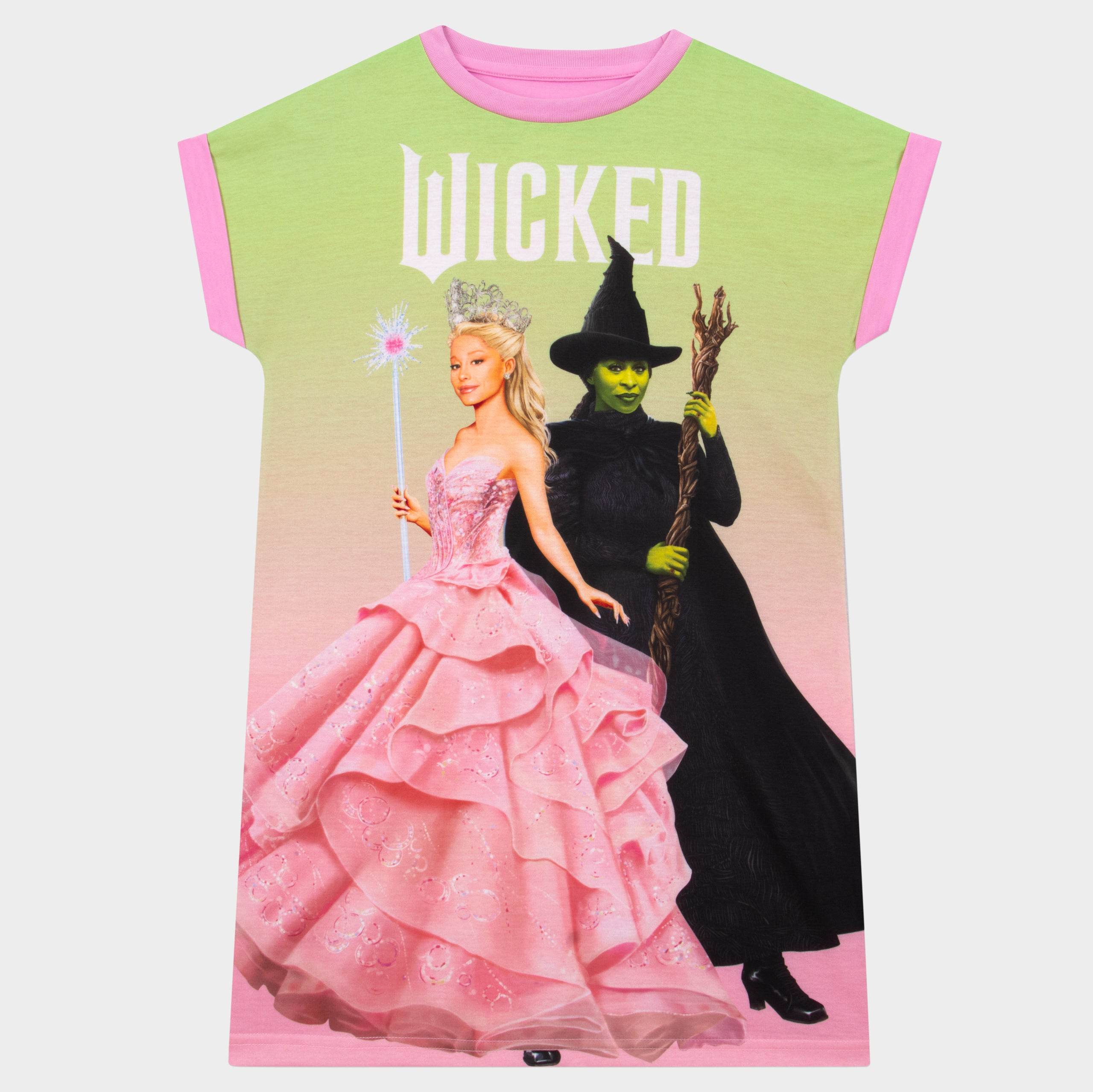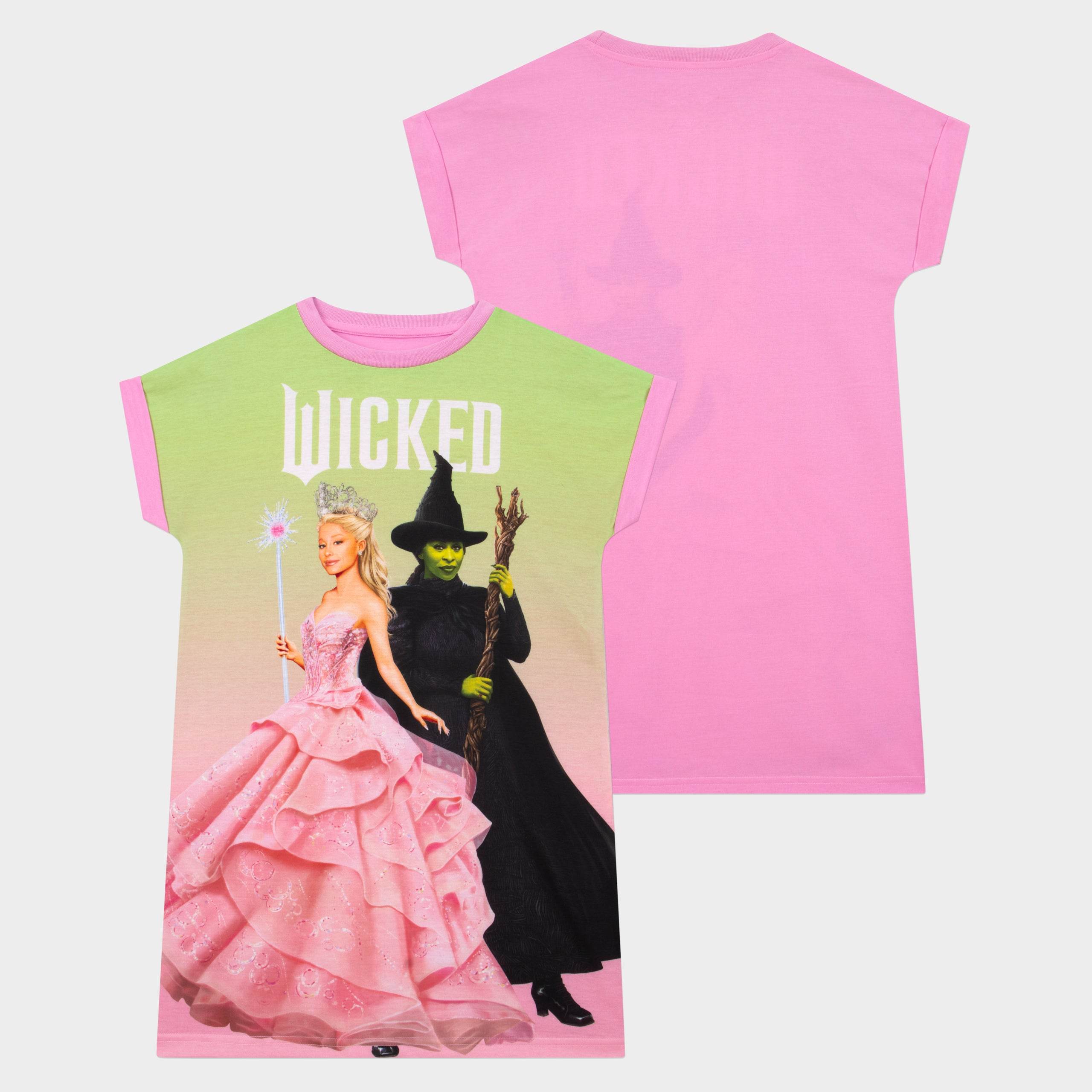 This wicked nightdress is a must-have for little fans of Wicked, bringing the iconic characters Glinda (Ariana Grande) and Elphaba (Cynthia Erivo) to life with vibrant colours and the unmistakable Wicked logo. The stylish ombre background adds a touch of magic, making it perfect as pyjamas for girls who love the musical. Whether they're singing along to the musical or imagining adventures, this pink nightdress ensures they're cosy in wicked style.
